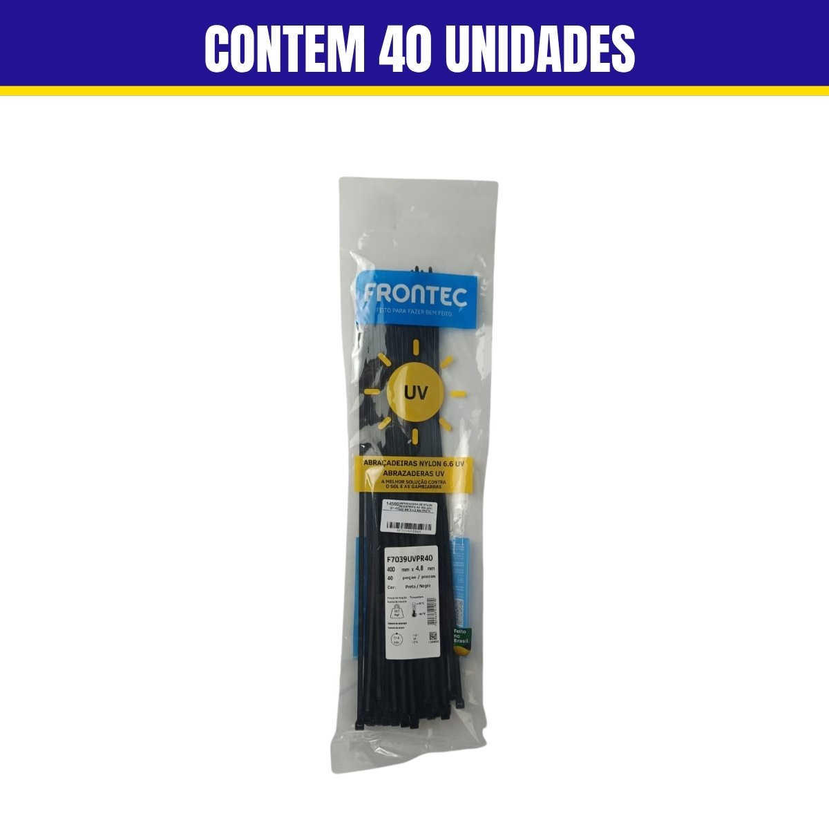 Abracadeira De Nylon Resistente ao Sol 400 mm X 4,8 mm Preta