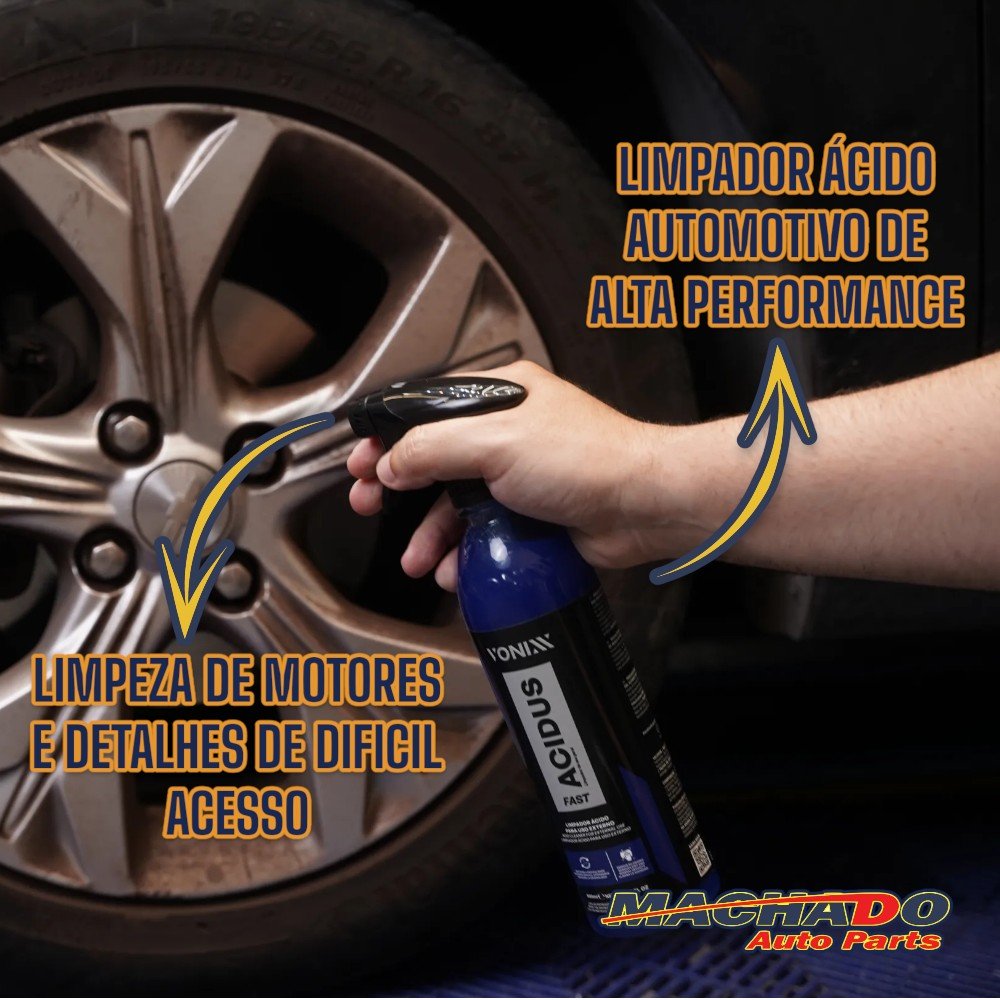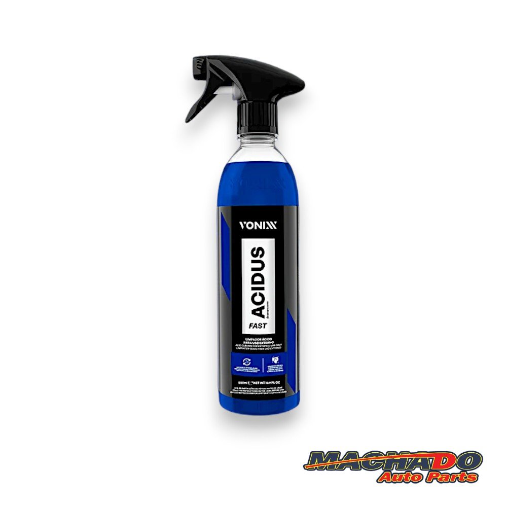 ACIDUS FAST é um limpador ácido automotivo de alta performance, desenvolvido para proporcionar resultados rápidos e eficazes na remoção de sujeiras minerais e contaminantes incrustados. Ideal para a limpeza de rodas, chassis, emblemas, plásticos externos e metais, o produto atua com alto poder de desincrustação, eliminando resíduos que os limpadores convencionais não conseguem remover.