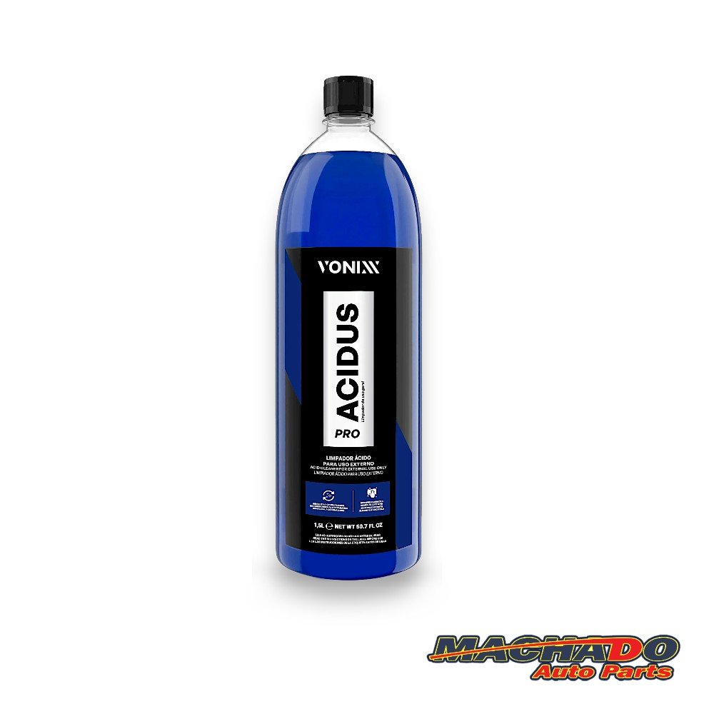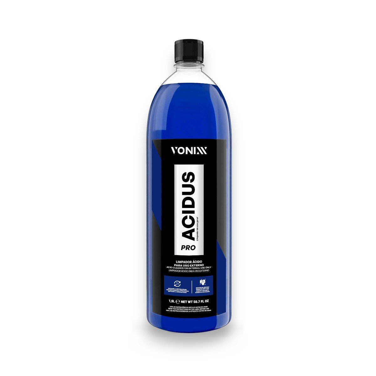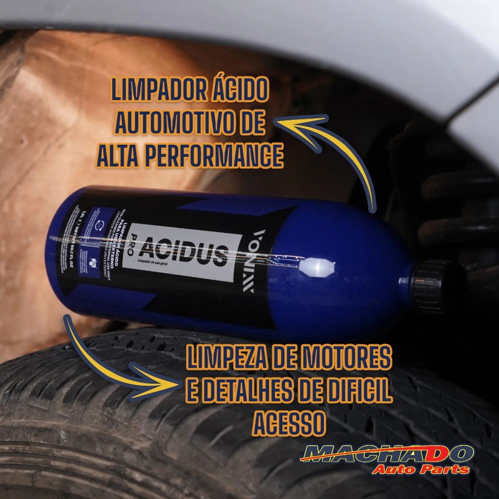 ACIDUS PRO é um limpador ácido automotivo de alta performance, desenvolvido para remover sujeiras minerais em rodas, chassis, emblemas, plásticos externos e metais. Sua fórmula balanceada permite restaurar a originalidade de diversas áreas do veículo, eliminando marcas d'água leves em vidros e pinturas, além de poder ser utilizado na limpeza de motores e detalhes de difícil acesso, grades e contornos.