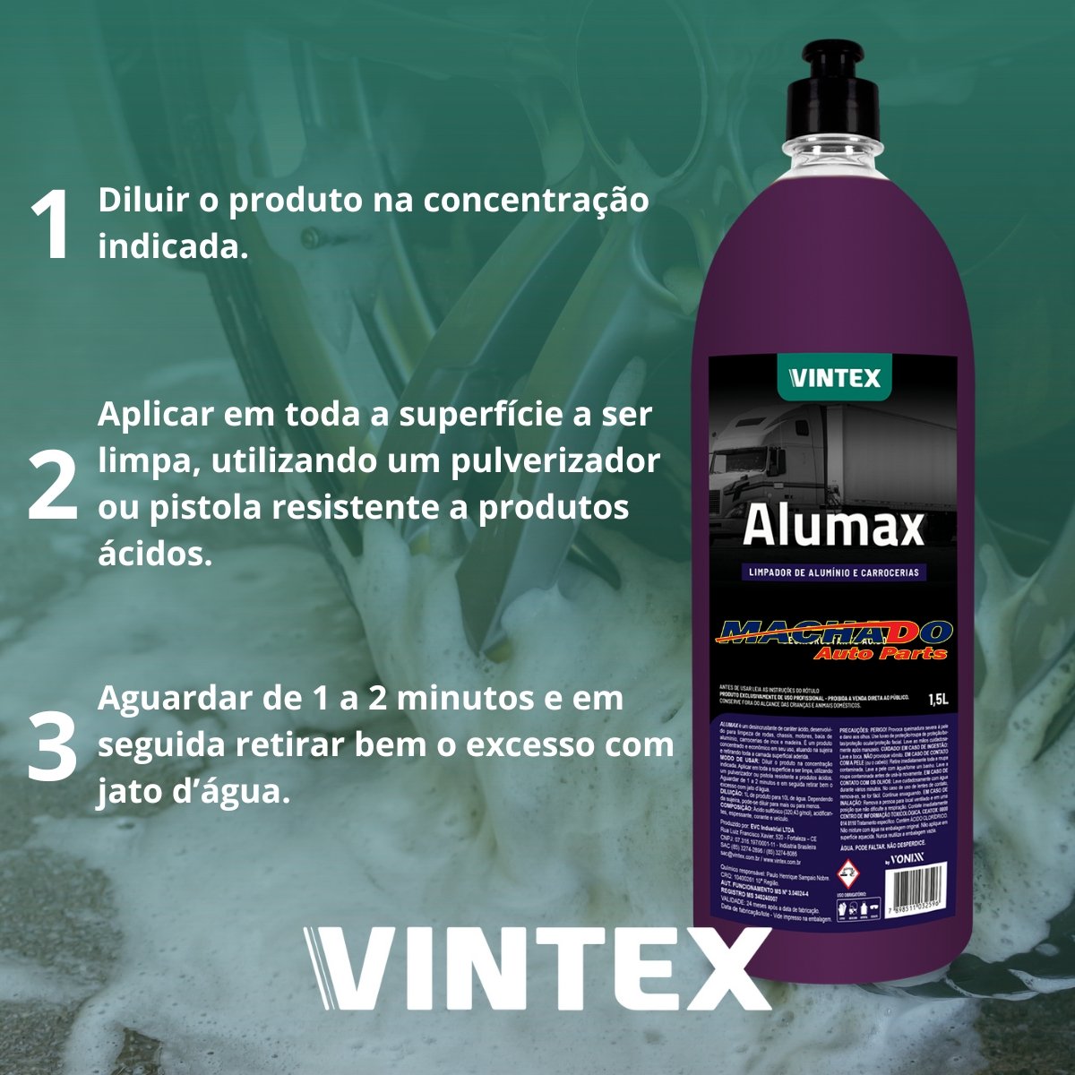 Alumax é um poderoso desincrustante de base ácida, formulado especialmente para a remoção eficaz de sujeiras incrustadas em rodas, chassis, motores, baús de alumínio, carrocerias de inox e madeira. Sua composição de alta performance dissolve resíduos difíceis, restaurando o brilho original das superfícies sem causar danos.