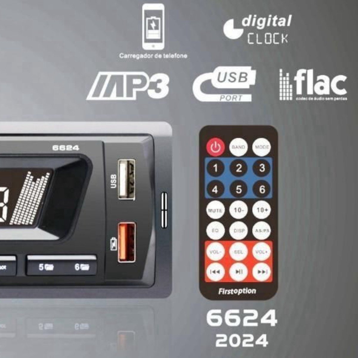 Auto Rádio Som Mp3 Player Bluetooth Fm Usb Controle First Option 6624