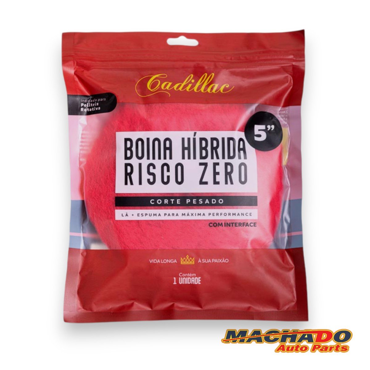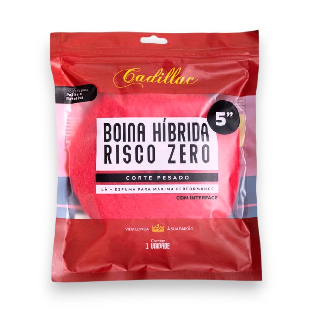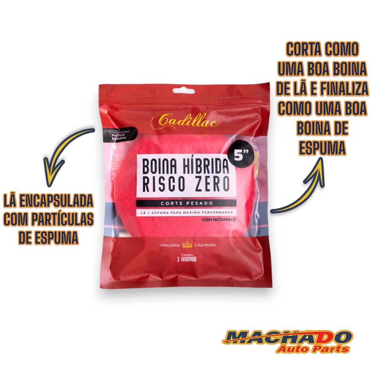 A Boina Híbrida Risco Zero Corte Pesado Cadillac® é ideal para correções de pintura com defeitos que exigem alta capacidade de corte. Feita da mais pura lã encapsulada com partículas de espuma, essa composição oferece melhores resultados de performance em menos tempo.