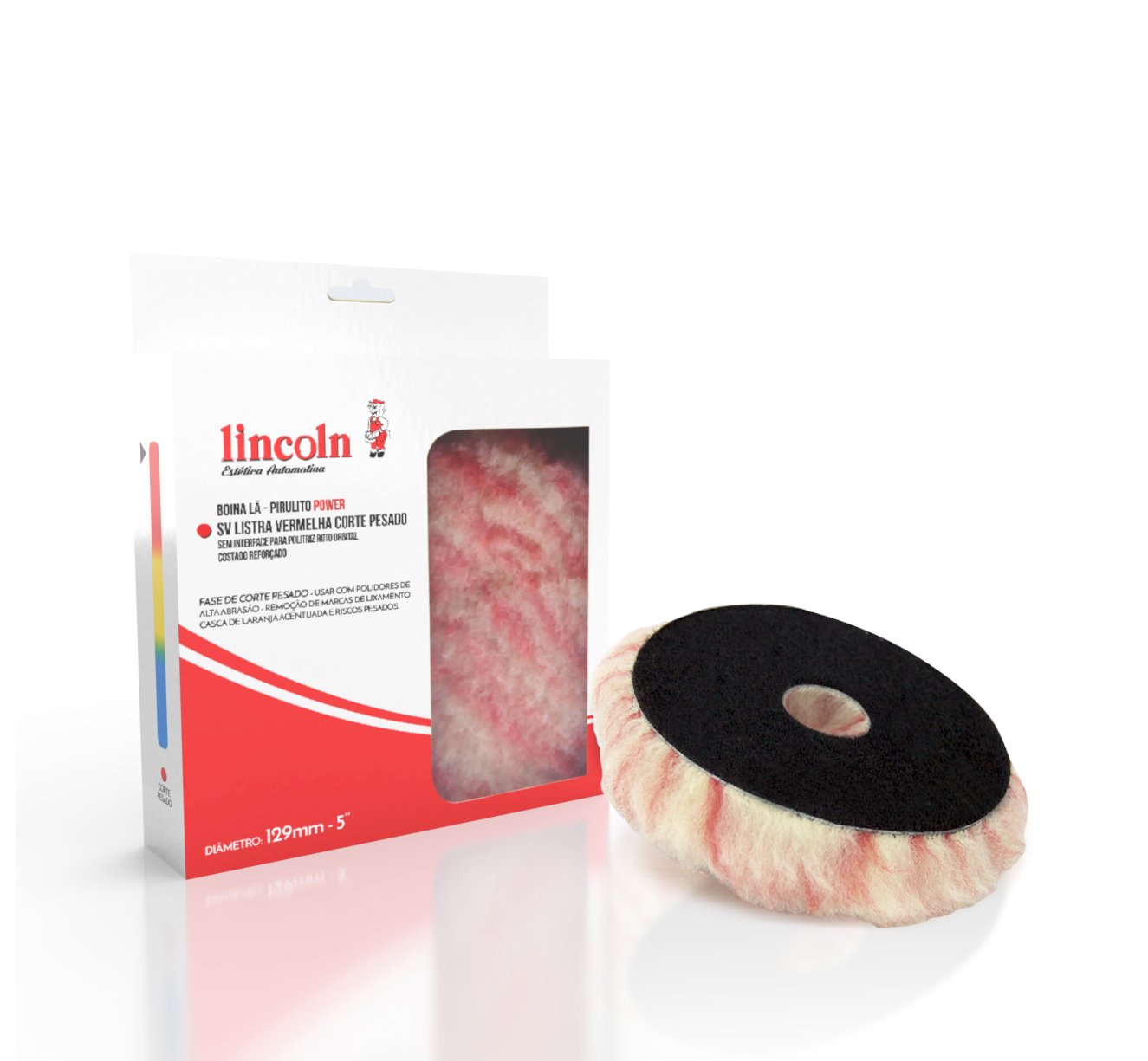 Boina de Lã Pirulito Power Corte Pesado Sem Interface 5" Lincoln é uma boina de lã de corte pesado para ser usada na politriz rotativa e na politriz roto orbital.A Boina Lincoln de Lã Pirulito Power Corte Pesado é indicada para a fase de corte, proporcionando um excelente corte removendo marcas de lixamento como lixas 1.200 grits, casca de laranja acentuada e riscos pesados e mais intensos. É indicado seu uso com polidores de alta abrasão.