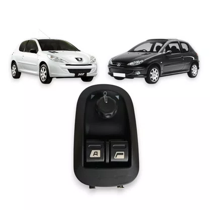 Botão Interruptor Vidro Elétrico Peugeot 206 207 Duplo Com Retrovisor Elet. Lado Esquerdo