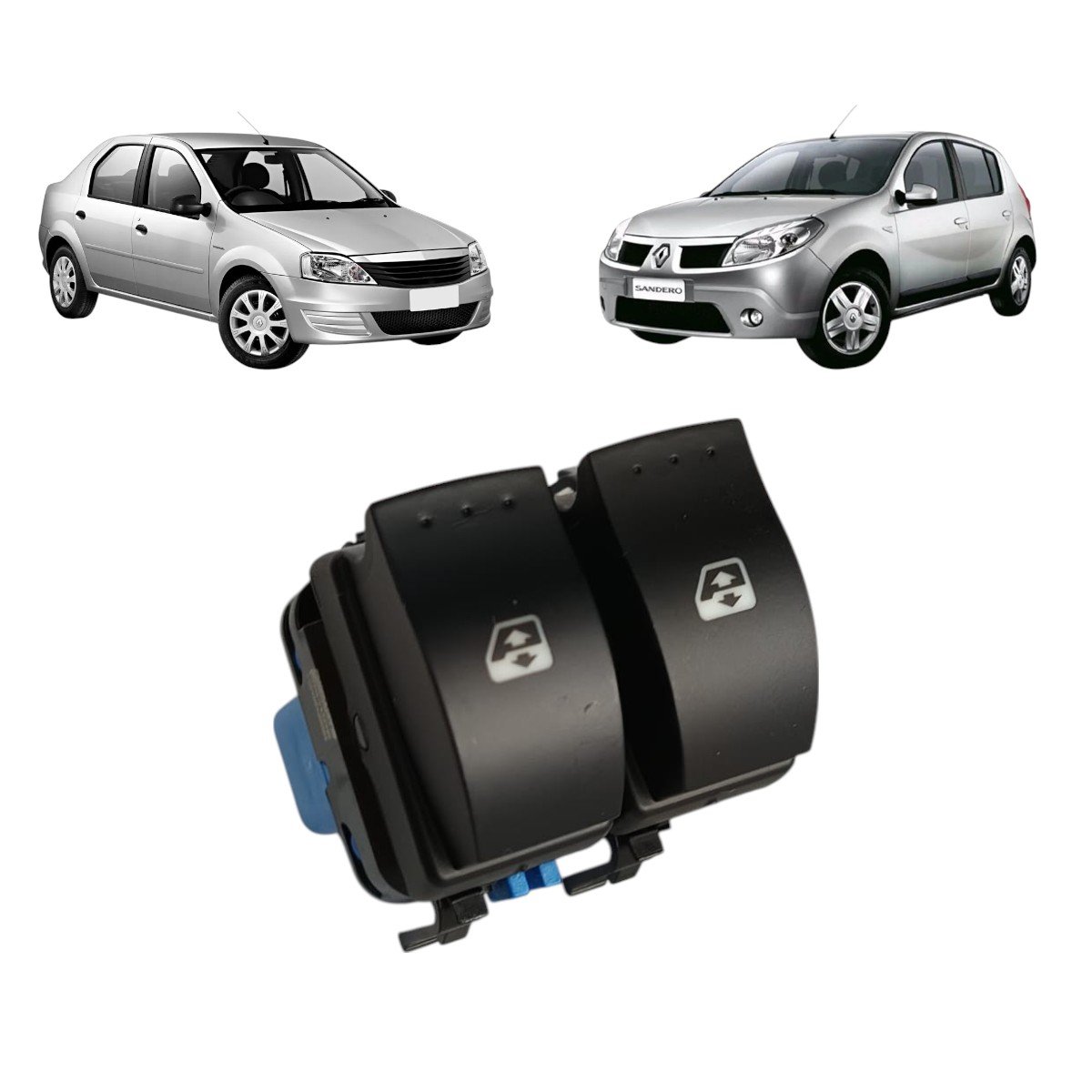 Botão Interruptor Vidro Elétrico Sandero Logan Duster Fluence Megane Duplo Fundo Azul