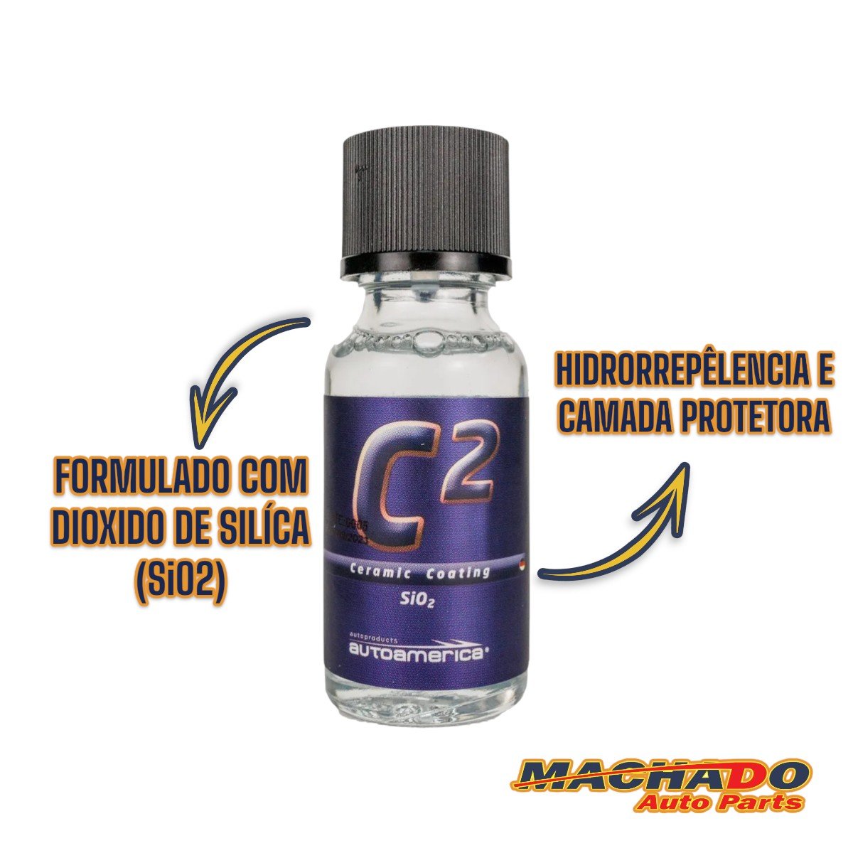 C2 é um vitrificador 7h, que forma uma camada protetora sobre a superfície do veículo, suavizando o toque, repelindo a água e diminuindo o acúmulo de sujeira.