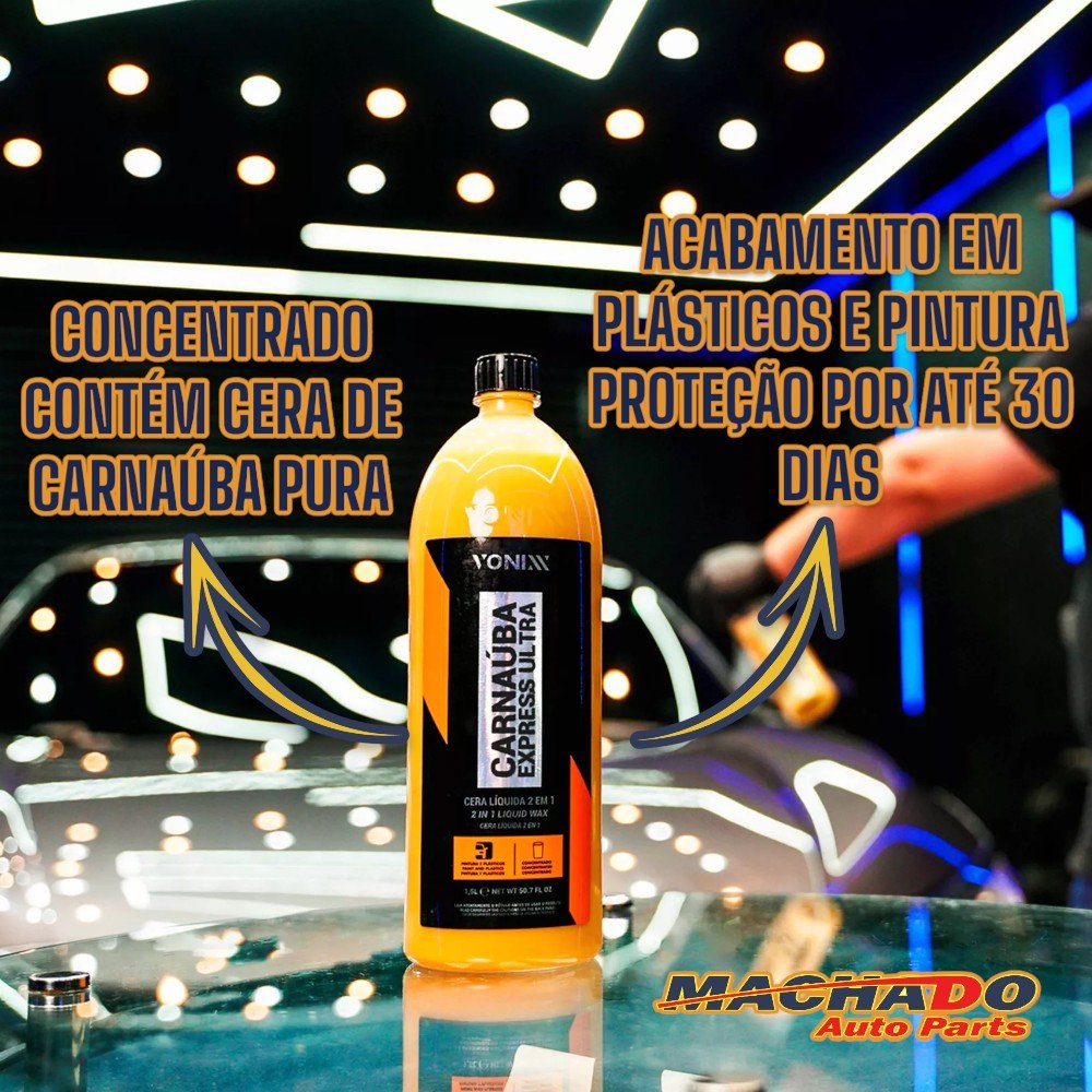 CARNAÚBA EXPRESS ULTRA é um produto versátil, ideal para enceramento da pintura e cuidados básicos com os plásticos. Sua fórmula contém carnaúba tipo 1 e promove excelente acabamento, toque aveludado e brilho à pintura. Nos plásticos internos e externos age na renovação do material. O produto pode ser utilizado em toda a superfície veicular, incluindo vidros, plásticos, rodas, etc. Nos plásticos, proporciona acabamento fosco ou acetinado, a depender da diluição. Rendimento: até 75L de cera pronta para uso.