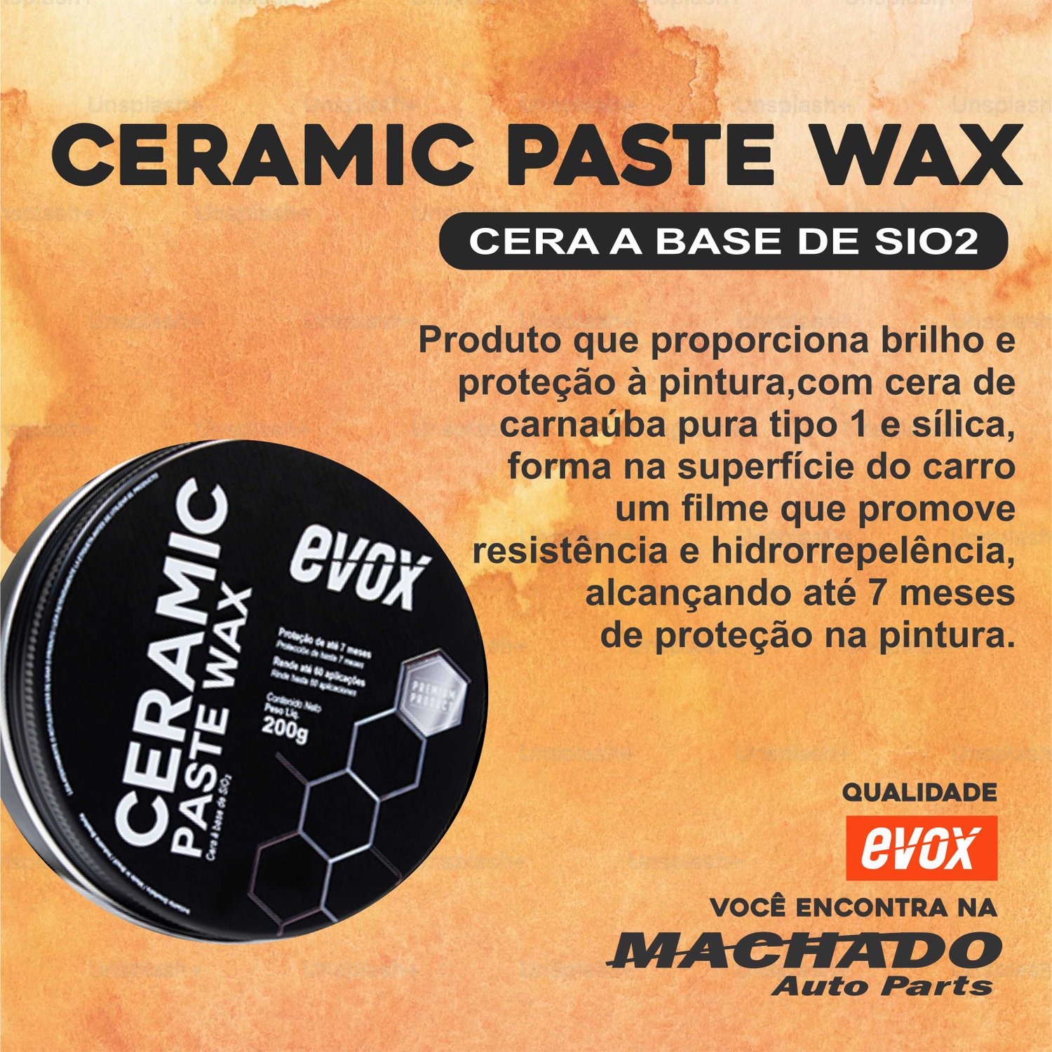 Ceramic Paste Wax é um produto que proporciona brilho e proteção à pintura veicular. Desenvolvido com cera de carnaúba pura tipo 1 e sílica, forma na superfície do carro um filme que promove resistência e hidrorrepelência, alcançando até 7 meses de proteção na pintura.