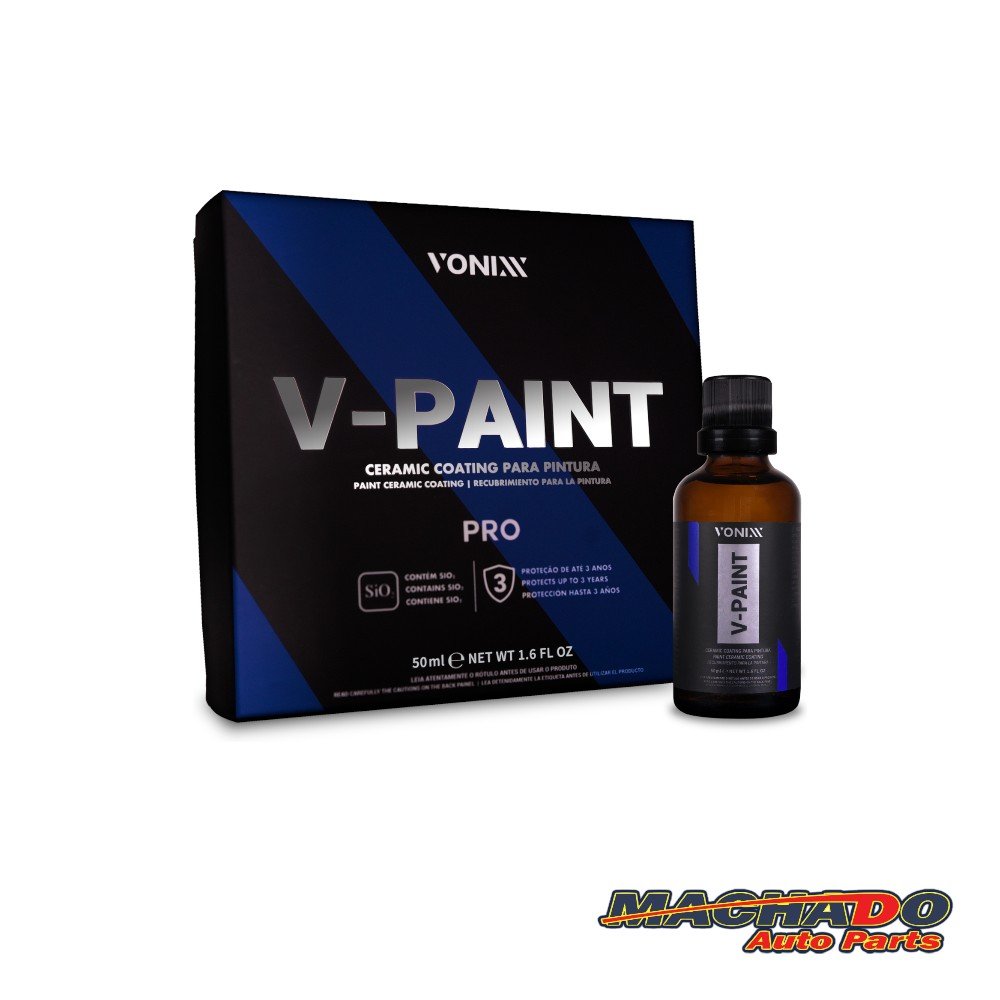V-PAINT Pro é um ceramic coating para pintura com durabilidade de até 3 anos, desenvolvido com moléculas de silício que revestem a superfície veicular e formam uma barreira nanotecnológica de alta resistência. V-PAINT Pro promove hidrorrepelência, proteção UV e brilho profundo. O nanofilme formado na pintura minimiza efeitos nocivos de seivas de árvores, excrementos de pássaros, ação de raios solares, maresia, chuva ácida e até mesmo os microrriscos causados por lavagens mal executadas, evitando o desgaste precoce da pintura.