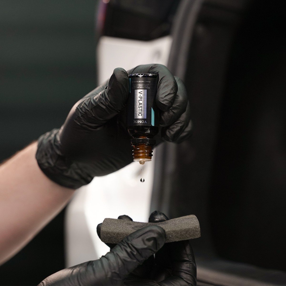 V-Plastic Pro é um coating semipermanente, desenvolvido exclusivamente para tratamento de superfícies plástica, a fim de renovar e restaurar plástico por um período de até três anos. Promove resistência e proteção UV. Também pode ser utilizado em plástico novos, para evitar a degradação do material e prolongar em até três vezes sua vida útil. V-Plastic Pro pode ser aplicado em para-choques, painéis e laterais de portas.