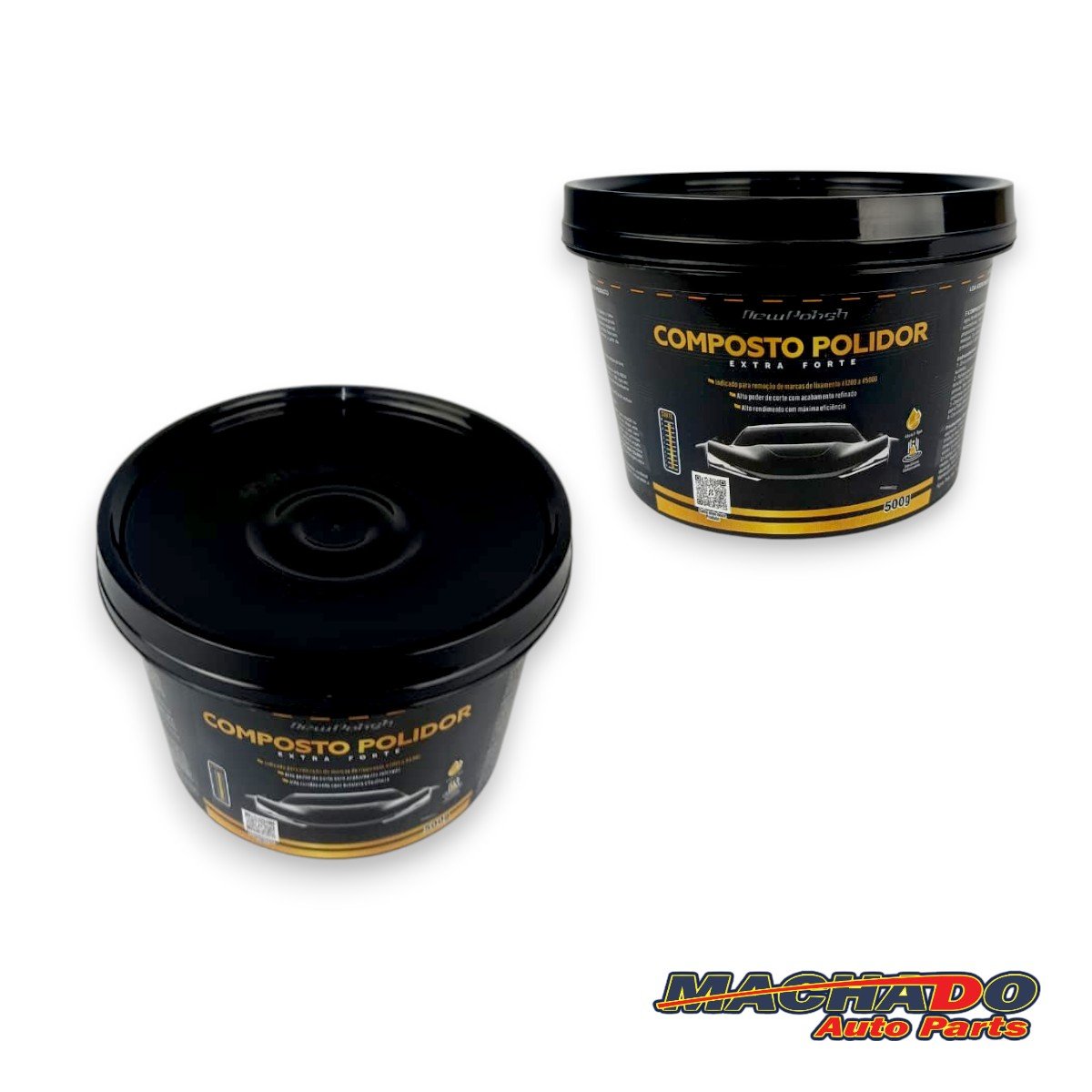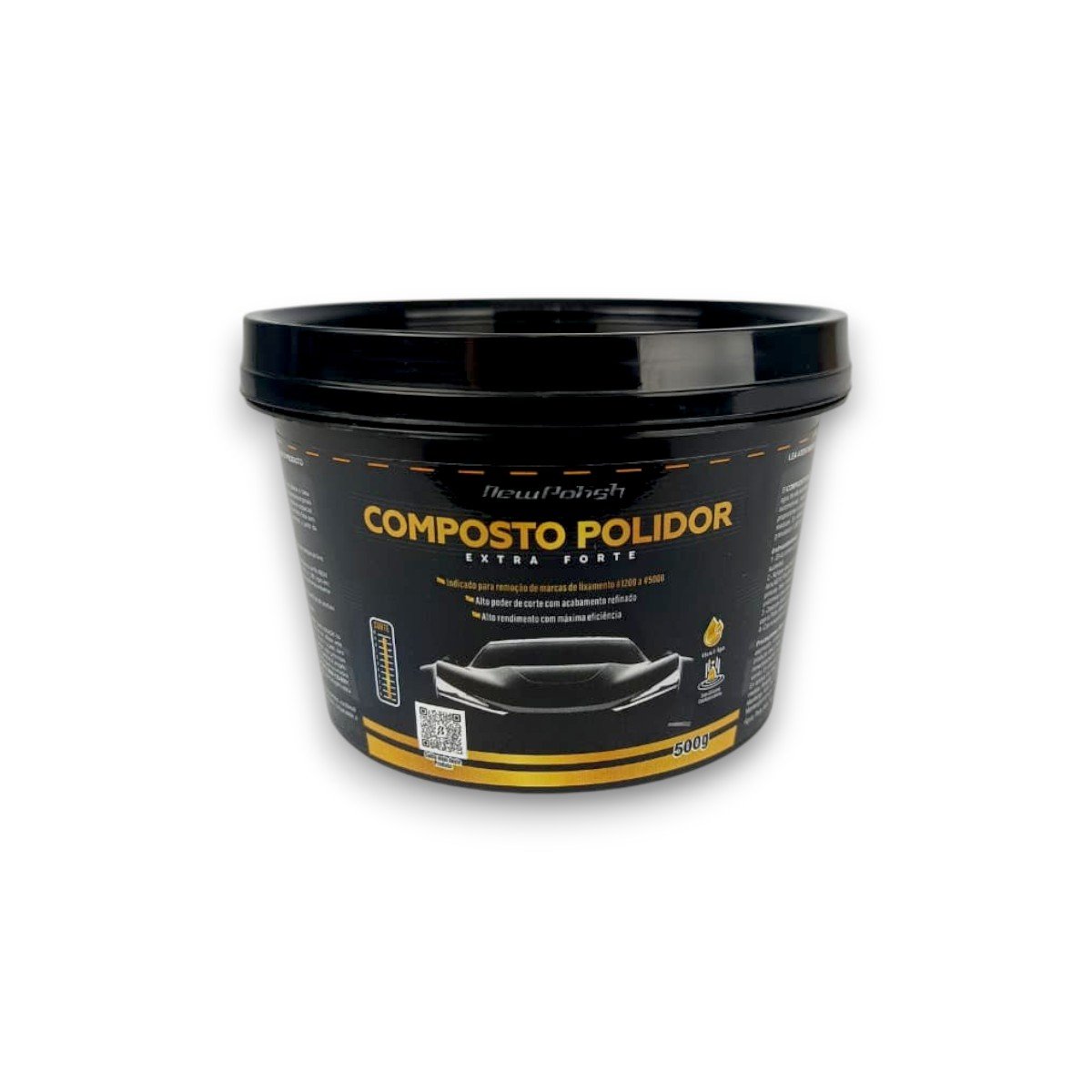 O Composto Polidor Extra Forte 500g New Polish, é um polidor a base d’água de alta tecnologia, destinado ao polimento automotivo de repinturas, pinturas originais, pinturas náuticas e industriais. Sua composição abrasiva especial, proporciona um rápido e excelente nível de corte, acabamento e brilho final sem deixar resíduos.