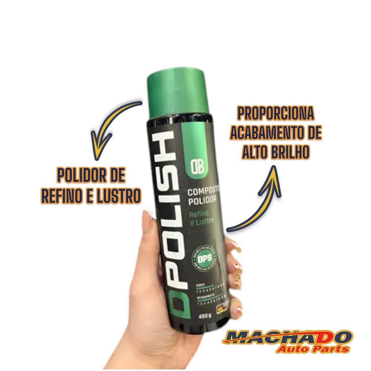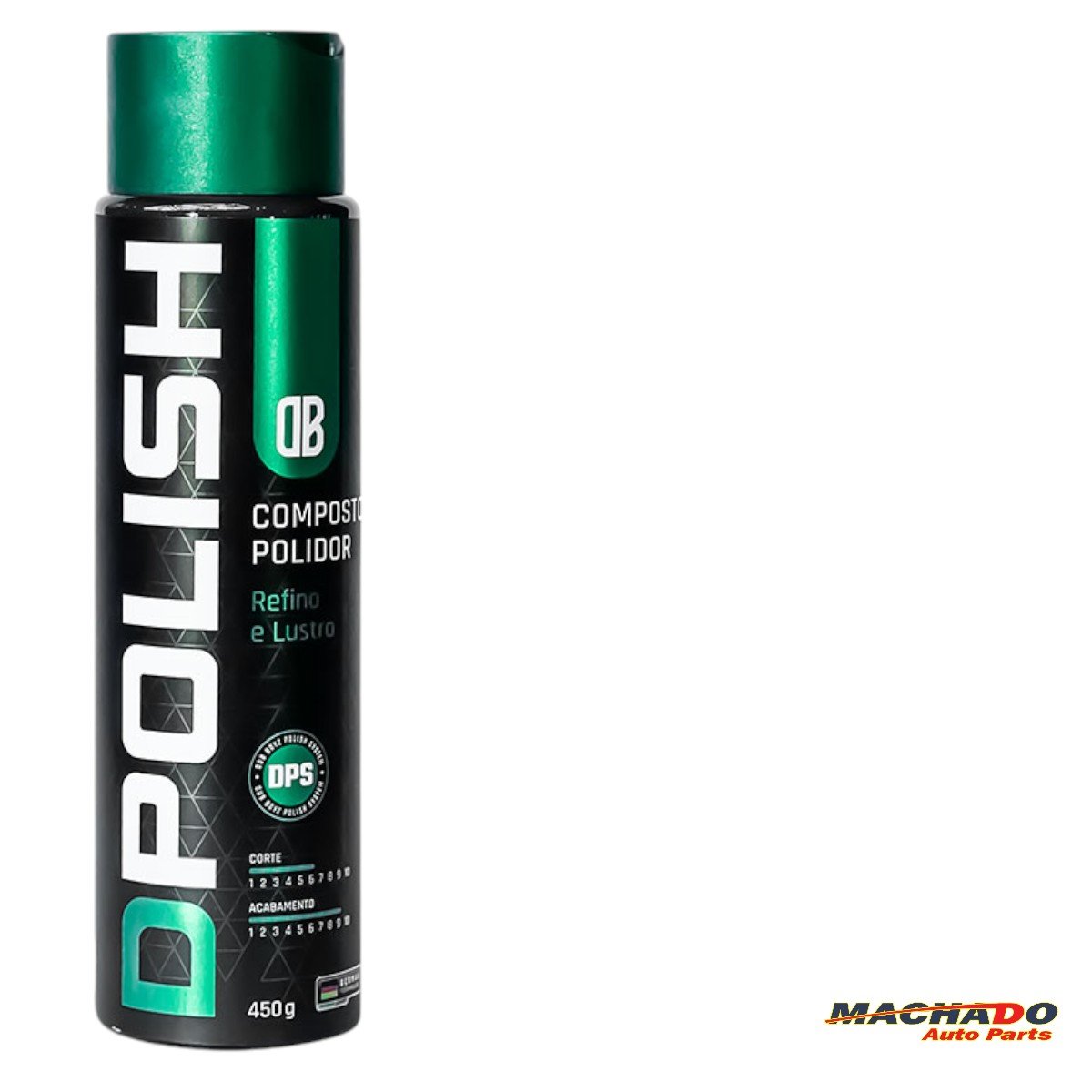 - Produto desenvolvido com base em abrasivos alemães para refino e acabamento, à base de água e de alta tecnologia para um acabamento de alto brilho em uma embalagem de 450 g com tampa flip top. Fabricado com abrasivos de calcinações diferentes e emulsão especial. Devido sua alta tecnologia de formulação promove alto rendimento, rapidez no processo e brilho intenso. Suas principais características são: Ótimo acabamento, alta lubrificação, trabalho rápido, limpo e sem pó. Pode ser utilizado com boina de espuma ou lã ajustando a abrasividade ao depender da situação. Se optar por boina de lã ou espuma de corte pesado ou médio, o produto exerce corte leve com refino em situações de holografias e ou marcas leves ou de polimento. Se optar por boina de espuma refino ou lustro promove acabamento limpo e de alto brilho equalizado ao tipo de dureza da pintura. Fácil remoção dos resíduos da peça.