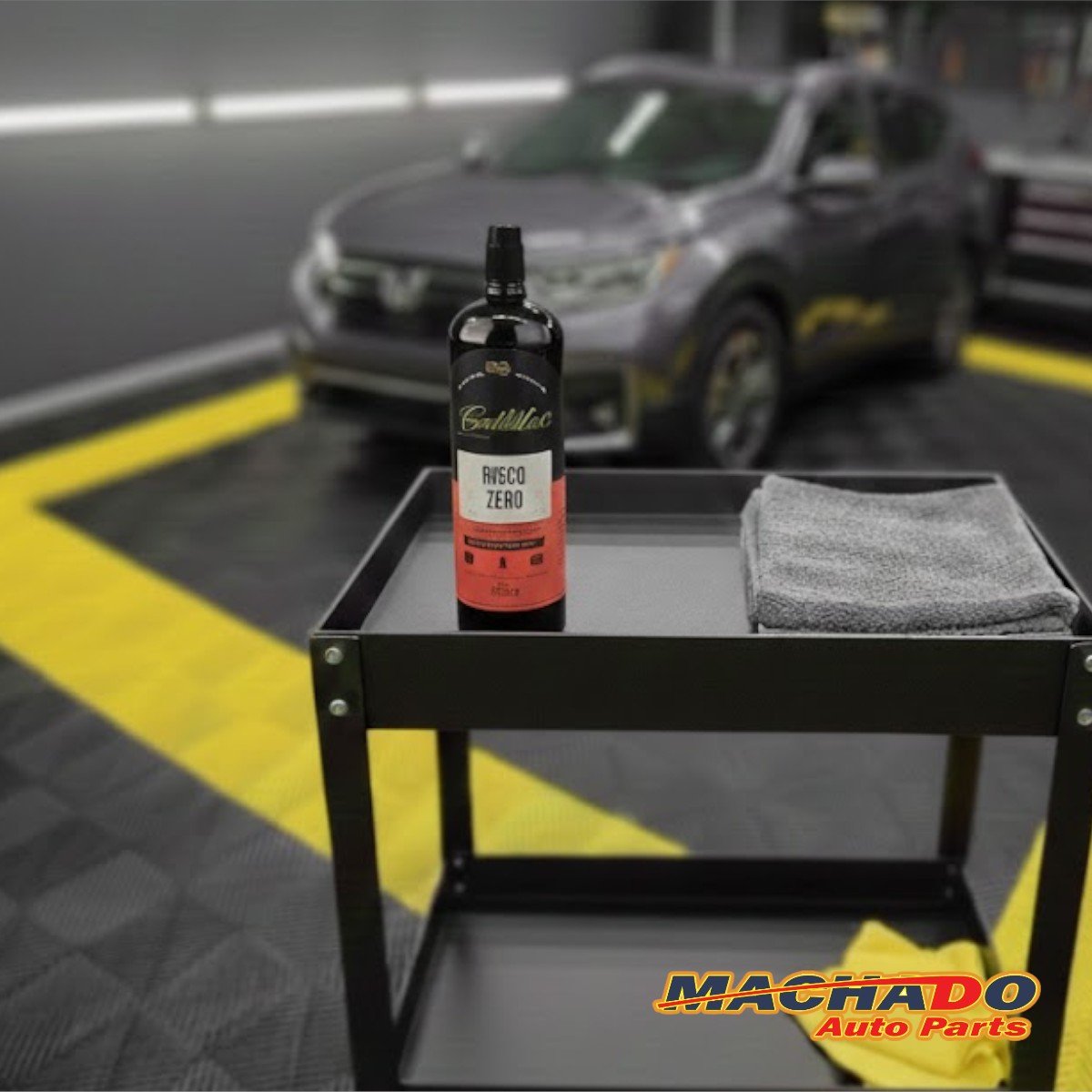 3- Com uma boina de lã ou espuma agressiva acoplada a uma politriz espalhe em pequenas quantidades risco zero cadillac sobre a superfície da boina ou diretamente na peça.