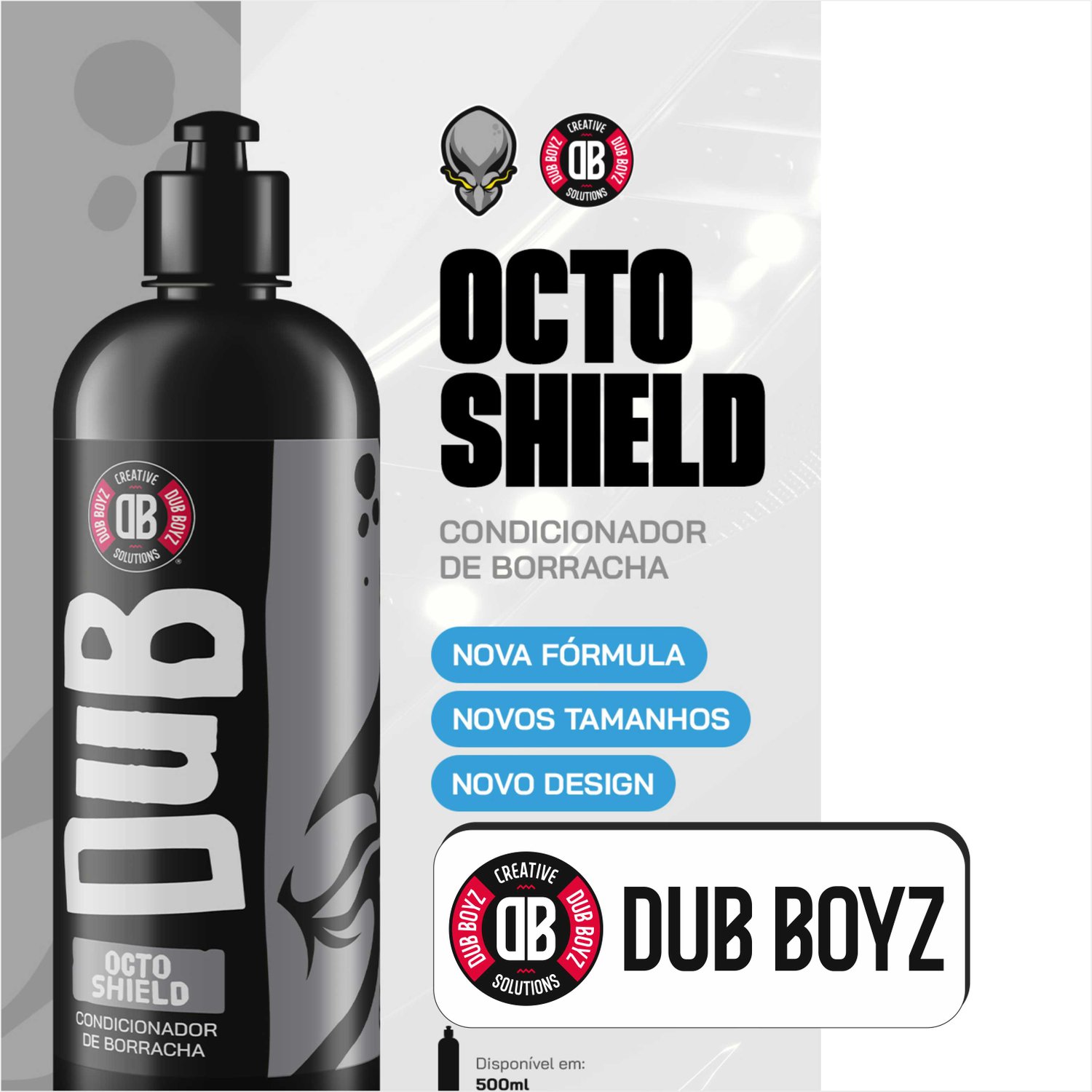 - Octor Sheild tem o toque seco, desenvolvido com blend de silicones, sua fórmula hidrata a borracha deixando-a com aspecto acetinado e novo. Além disso, seus componentes têm características antiestáticas e hidrorrepelentes, que protegem a superfície dos pneus e