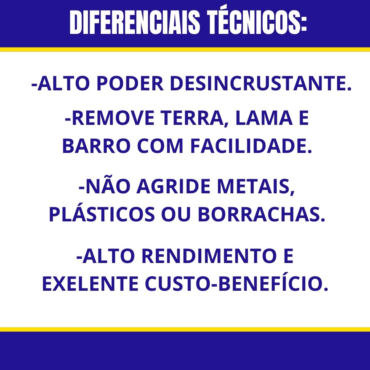 Detergente lava auto desincrustante, desenvolvido especialmente para enfrentar sujeiras pesadas como terra, lama, barro e resíduos oleosos. Ideal para veículos off-road - motos, pick-ups e UTVs - sua fórmula de alta performance promove a quebra e a flotação das partículas, facilitando a remoção da sujeira com máxima eficiência sem danificar as superfícies.