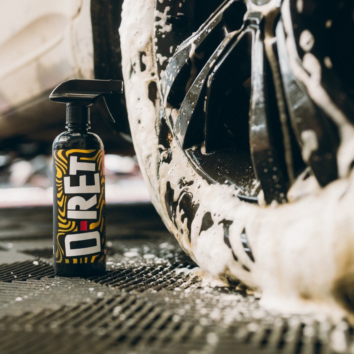 1 Aplicação: Pulverize o D-RET diretamente sobre a sujeira em pneus ou borrachas secas.