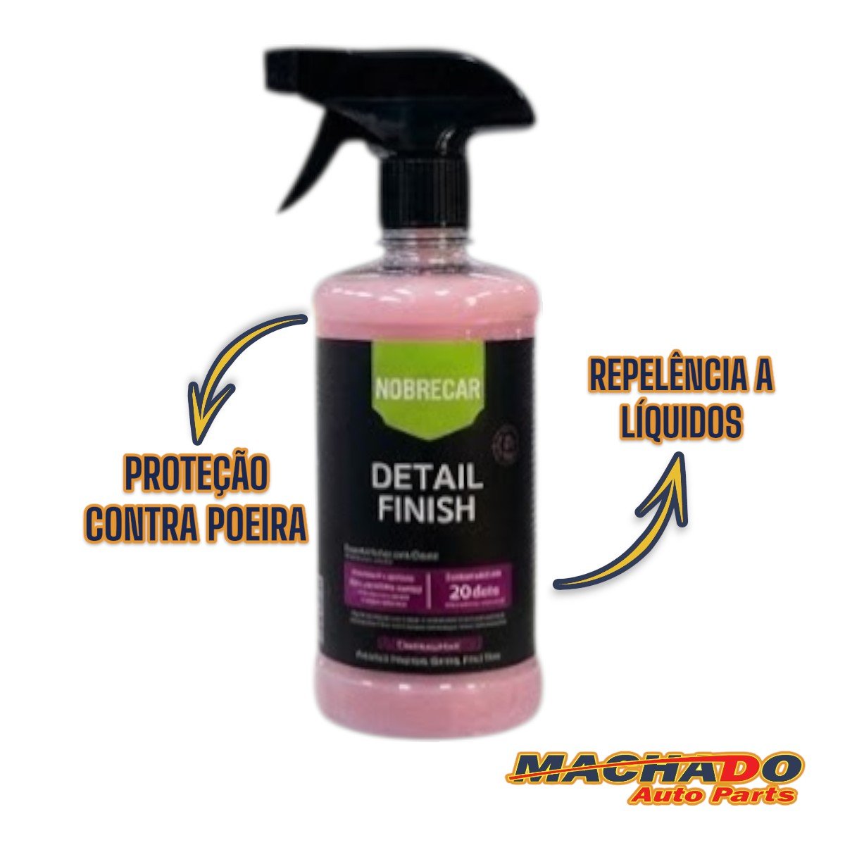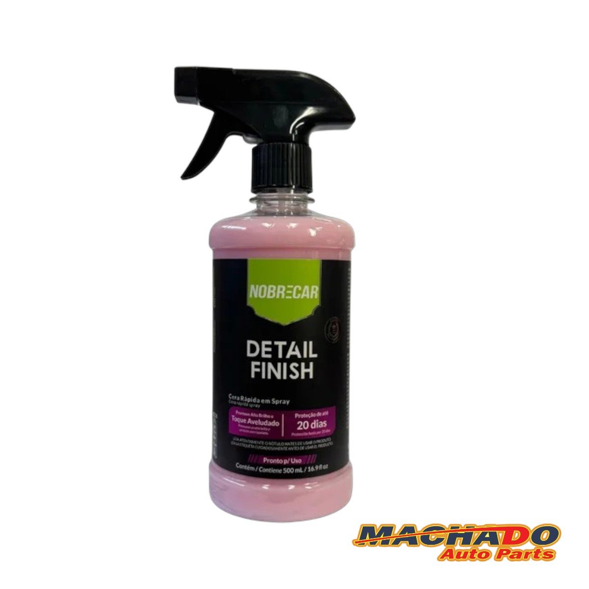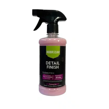 A Detail Finish é uma cera de ação rápida e alto impacto, agilizando o processo da proteção com sua ação limpadora, fixação instantânea e alta lubrificação. Com sua composição rica em carnaúba promove brilho instantâneo com toque aveludado evidente, também agindo contra a ancoragem de poeira e promove repelência a líquidos. Recomendado para todos os tipos de pinturas e superfícies. Sua proteção pode chegar até 20 dias.