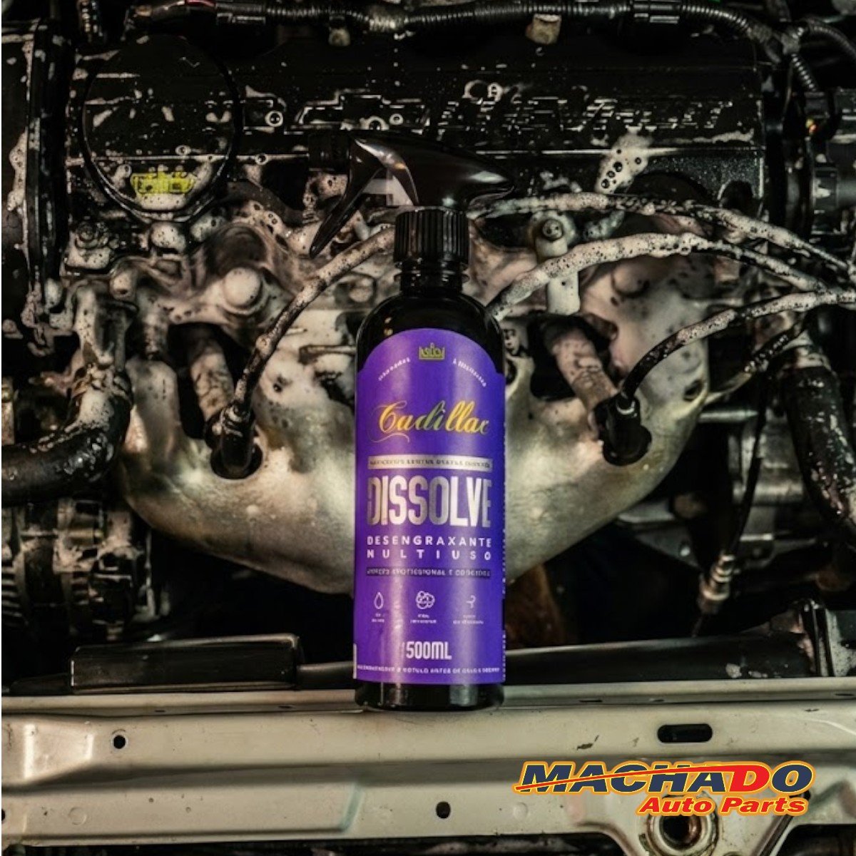 O Dissolve da Cadillac é um desengraxante multiuso de alto desempenho, formulado para dissolver gordura, óleo, graxa e sujeira pesada com rapidez e eficiência. Com pH neutro, ele limpa sem agredir pintura, metais, plástico ou borracha — perfeito para uso no carro, na garagem e dentro de casa.