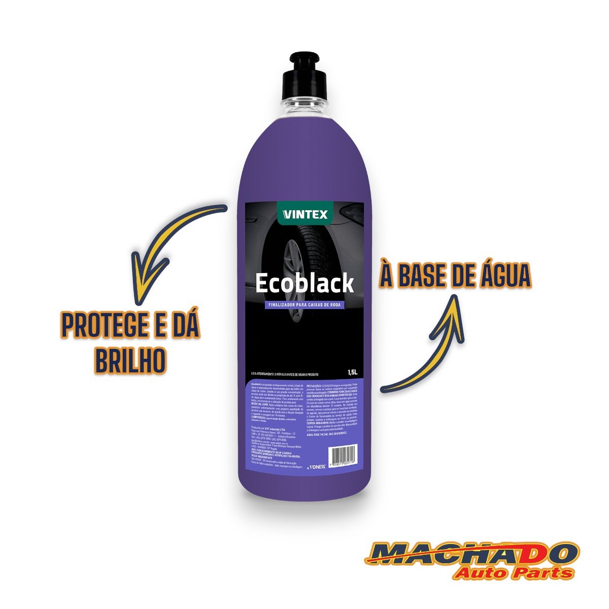 Ecoblack é um produto ecologicamento correto, à base de água e especialmente desenvolvido para dar brilho em caixas de roda. Devido à sua grande concentração, o produto pode ser diluído na proporção de até 1L para 4L de água para acabamento fosco. Para acabamento com brilho, recomenda-se a utilização do produto puro.