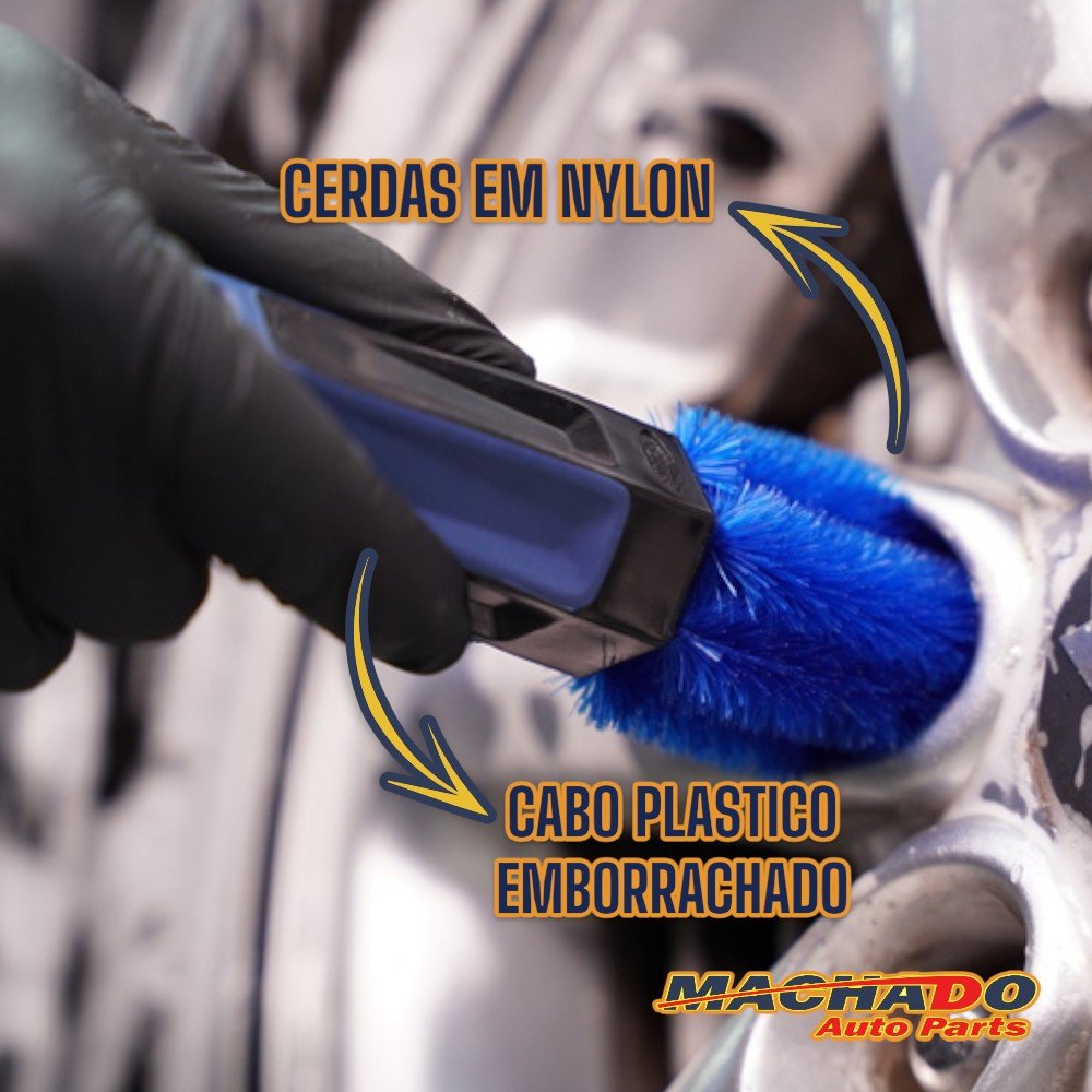 Formato anatômico que proporciona limpeza fácil e ágil de parafusos de rodas. As cerdas fixadas em estrutura de arame promovem resistência e flexibilidade.