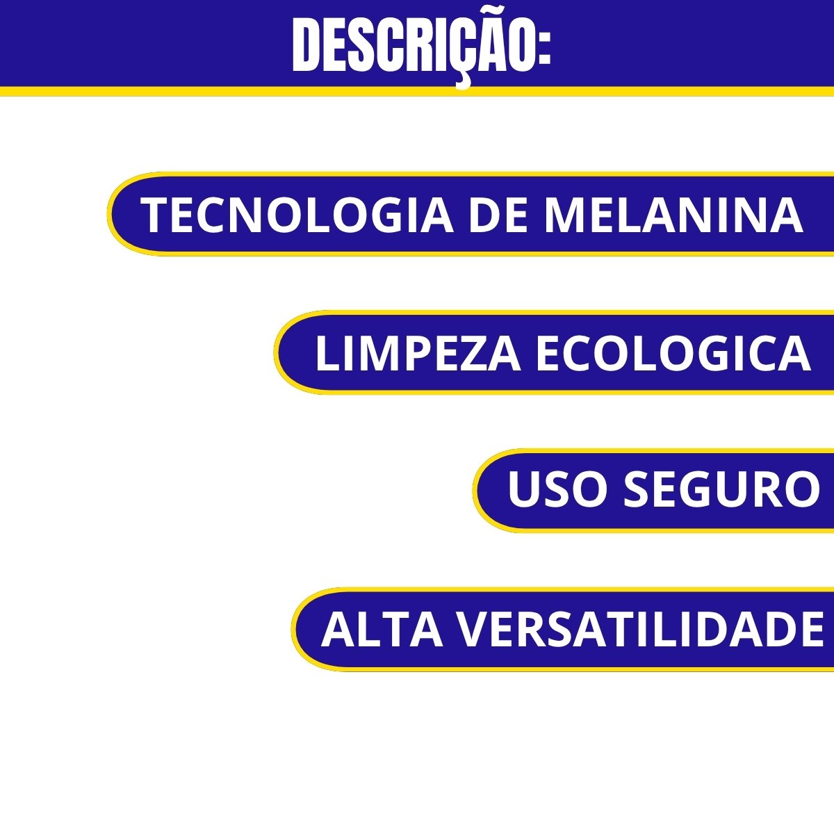 INDICAÇÃO: Remoção de manchas e limpeza leve. Limpa e tira manchas facilmente e sem utilizar produtos químicos. Ideal para todos os tipos de superfícies como paredes, plástico, madeira, fórmica, inox, vinil, couro, tomadas e interruptores, vidro, rejuntes e azulejos, pois remove riscos de giz, marca de mãos, manchas de copos sobre móveis, sujeiras de tênis, marcas de utensílios de inox, bolor e musgos de vidros, entre outros.