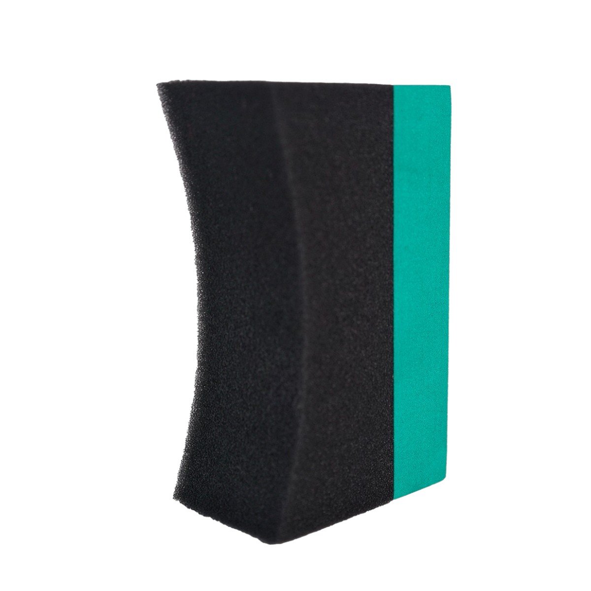 Este aplicador possui uma base que evita o contato das mãos com o produto. Sua espuma possui um formato côncavo, fazendo com que ela se encaixe com muito mais facilidade no pneu, evitando qualquer tipo de falha na hora da aplicação e também evitando desperdícios.