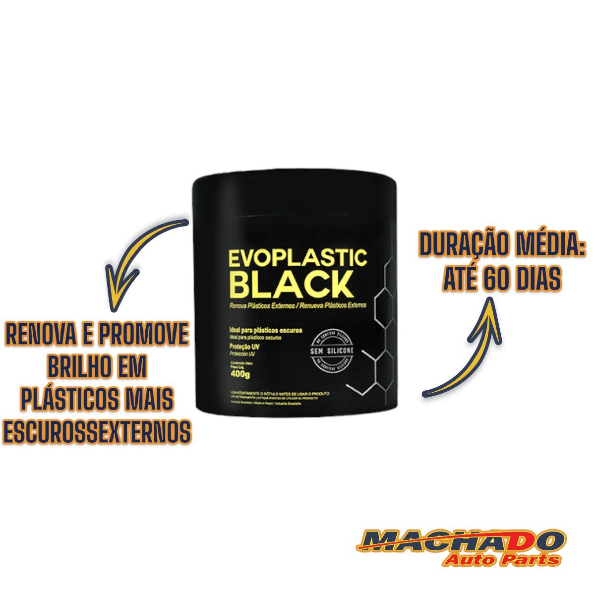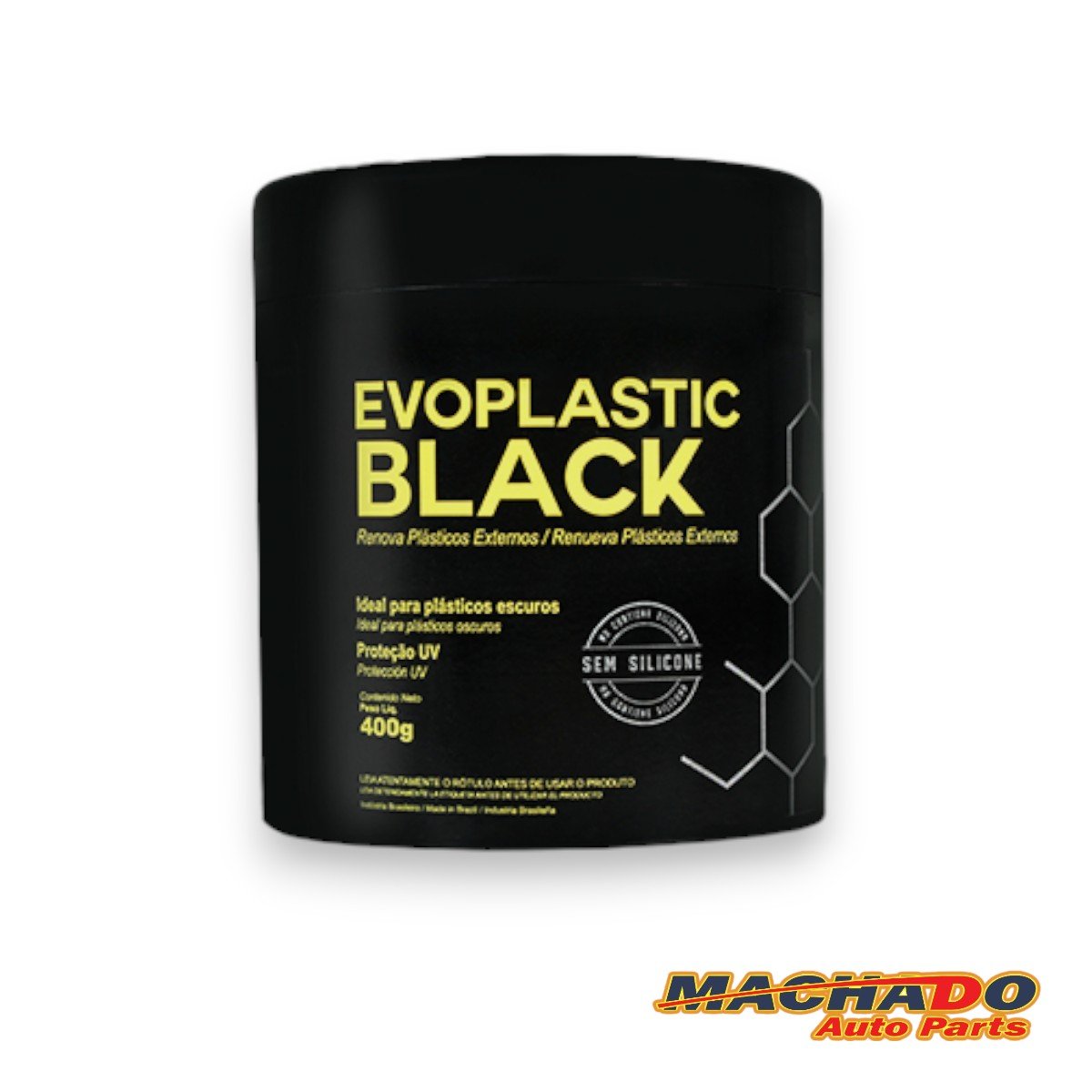 Evoplastic Black é um produto que renova e promove brilho em plásticos externos de automóveis, principalmente para os plásticos originalmente mais escuros. Por não conter silicones, é ideal para ser usado em oficinas de repintura automotiva.