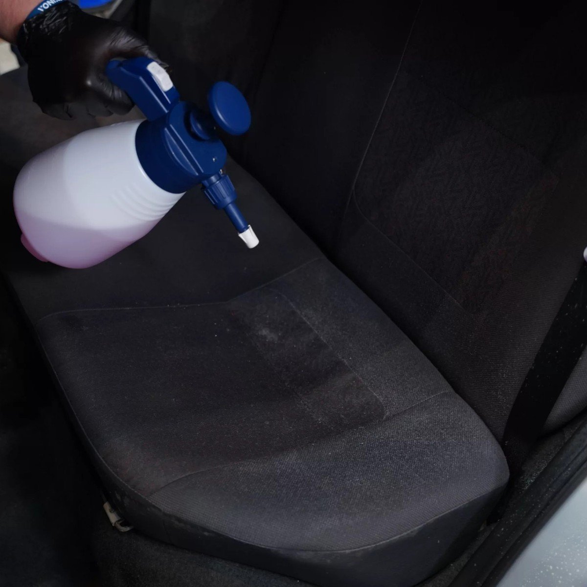 - Pulverizar uma fina névoa do produto, mantendo distância entre 20cm a 30cm da superfície, a fim de evitar encharcamento do estofado ou carpete.