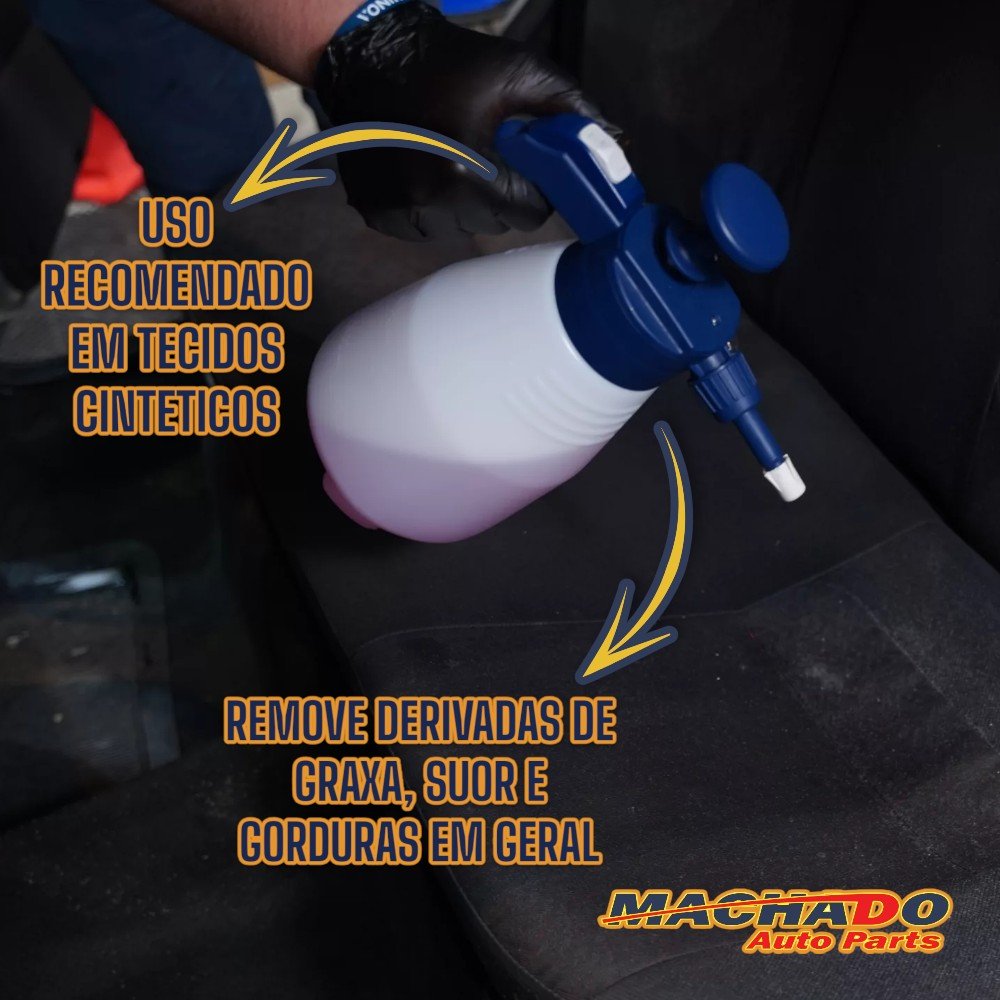 - Pulverizar uma fina névoa do produto, mantendo distância entre 20cm a 30cm da superfície, a fim de evitar encharcamento do estofado ou carpete.