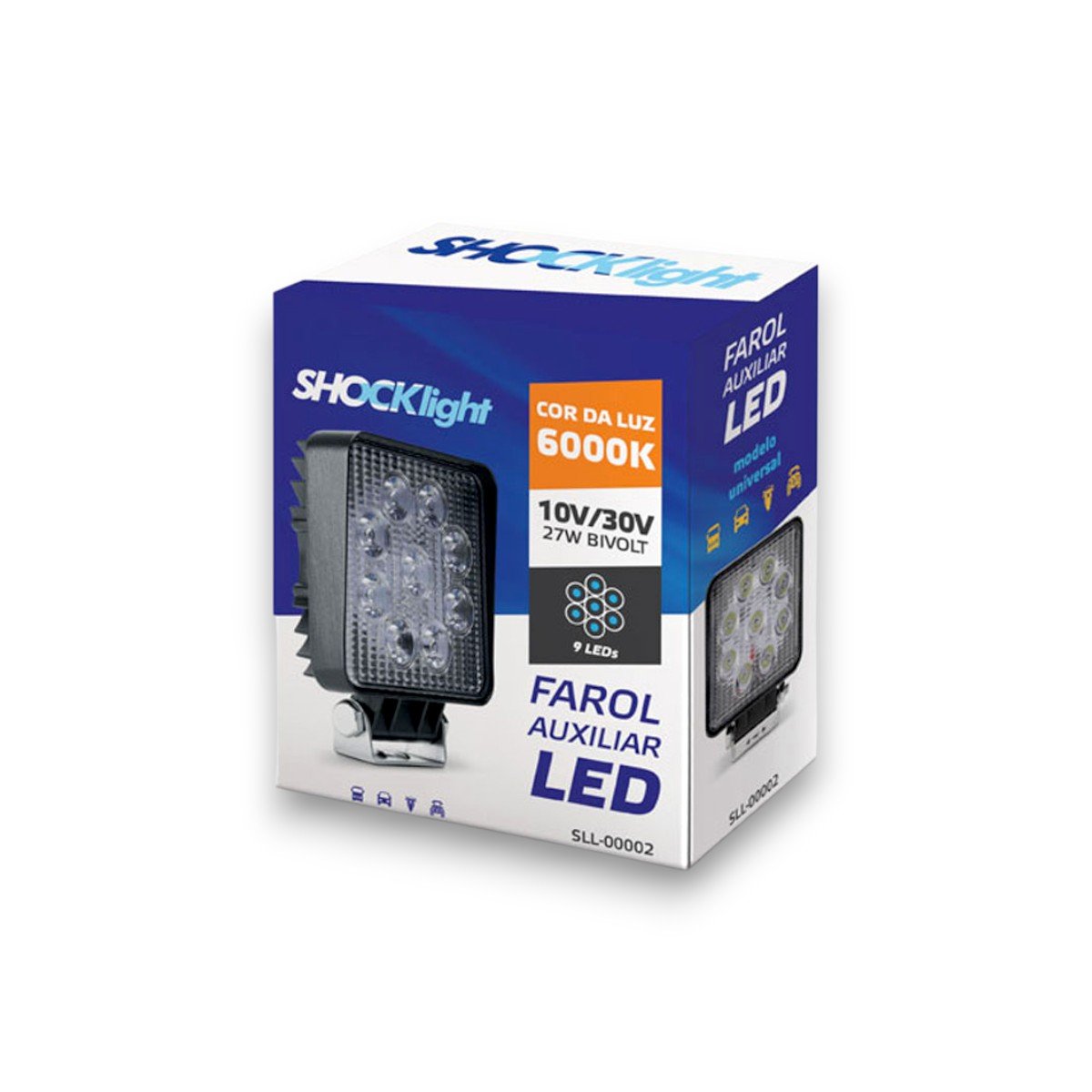 Farol Auxiliar LED Quadrado Fino Universal 12/24V 27W 9 Leds 6000K