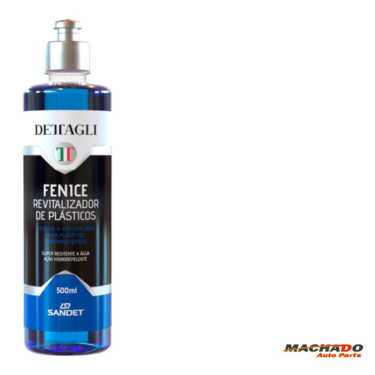 Sua fórmula conta com um poderoso formador de filme que cria uma película protetora completamente resistente à água e com capacidade de renovar a cor do plástico.