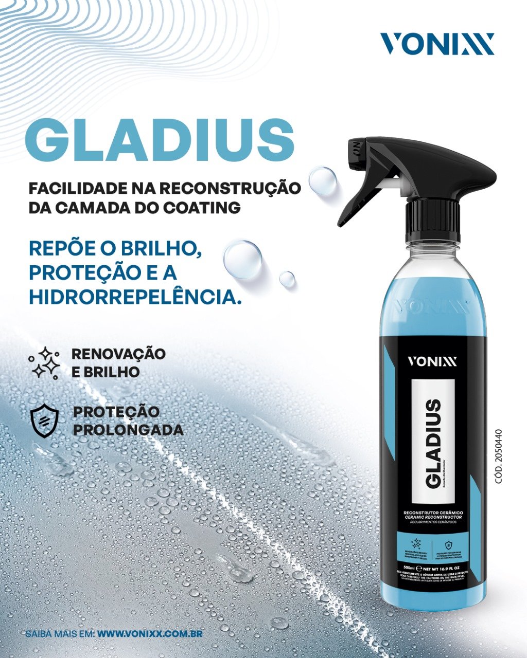 Os coatings cerâmicos sofrem degradação com a ação do tempo e podem sofrer ataques de produtos químicos indesejáveis. Isso faz com que a camada do produto perca parte da proteção, brilho e hidrorrepelência. Por esse motivo, criamos o GLADIUS, um reconstrutor cerâmico desenvolvido para repor a proteção, brilho e hidrorrepelência em superfícies vitrificadas. O produto pode ser aplicado sempre que for observada a perda de brilho e hidrorrepelência na pintura.