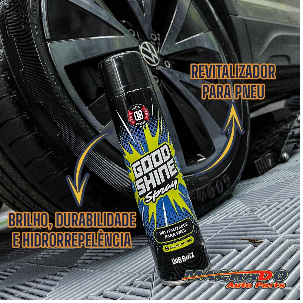 O Good Shine Spray Revitalizador Dub Boyz é um selante de pneus com acabamento brilhoso, toque seco e alta proteção, criando o efeito de pneu novo por semanas. Com fórmula avançada, oferece máxima fixação, hidrorrepelência e fácil aplicação, sendo ideal para manutenção automotiva eficiente e prática.