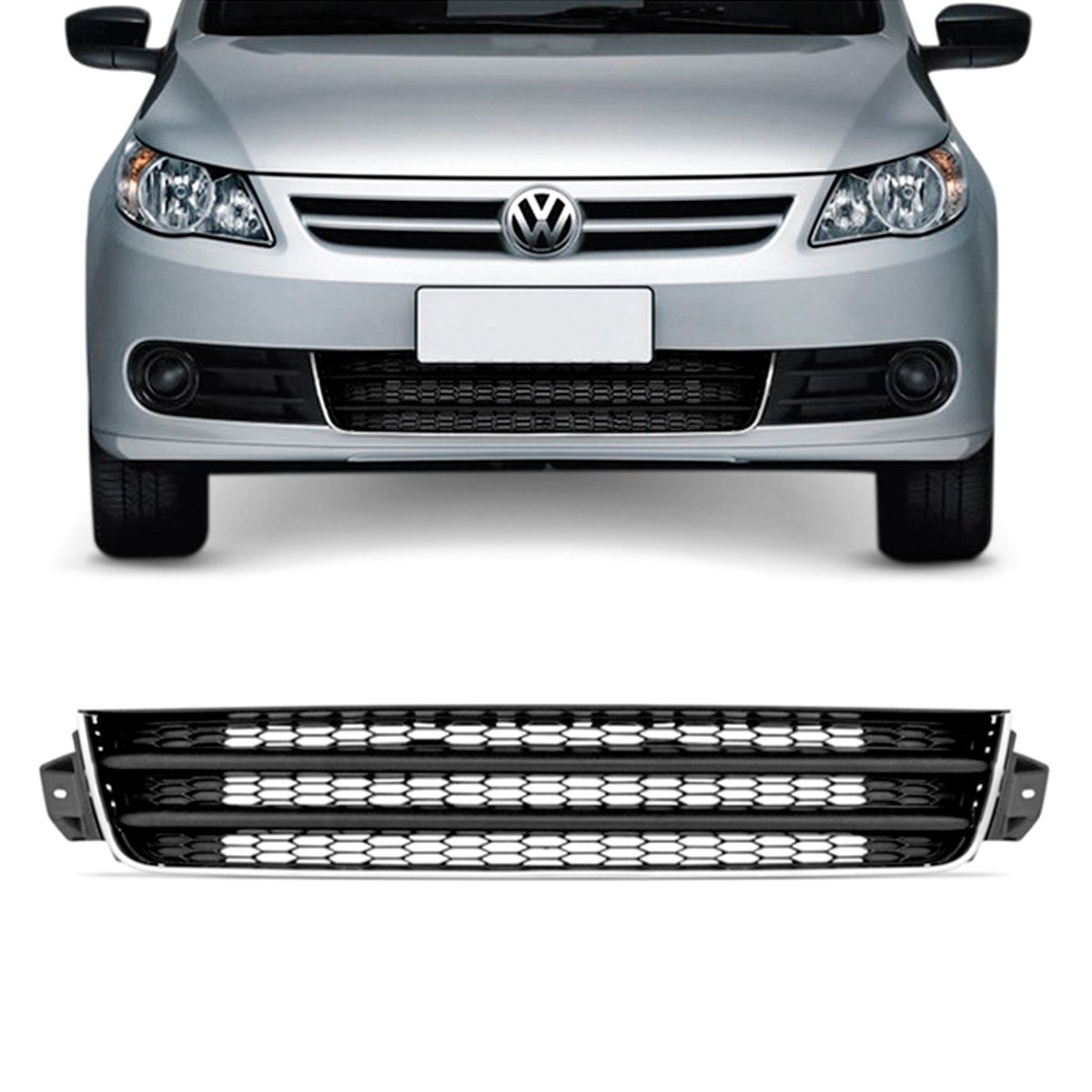 Grade Dianteira Parachoque Gol Saveiro Voyage G5 2008 a 2013 Preto com Friso Cromado Central