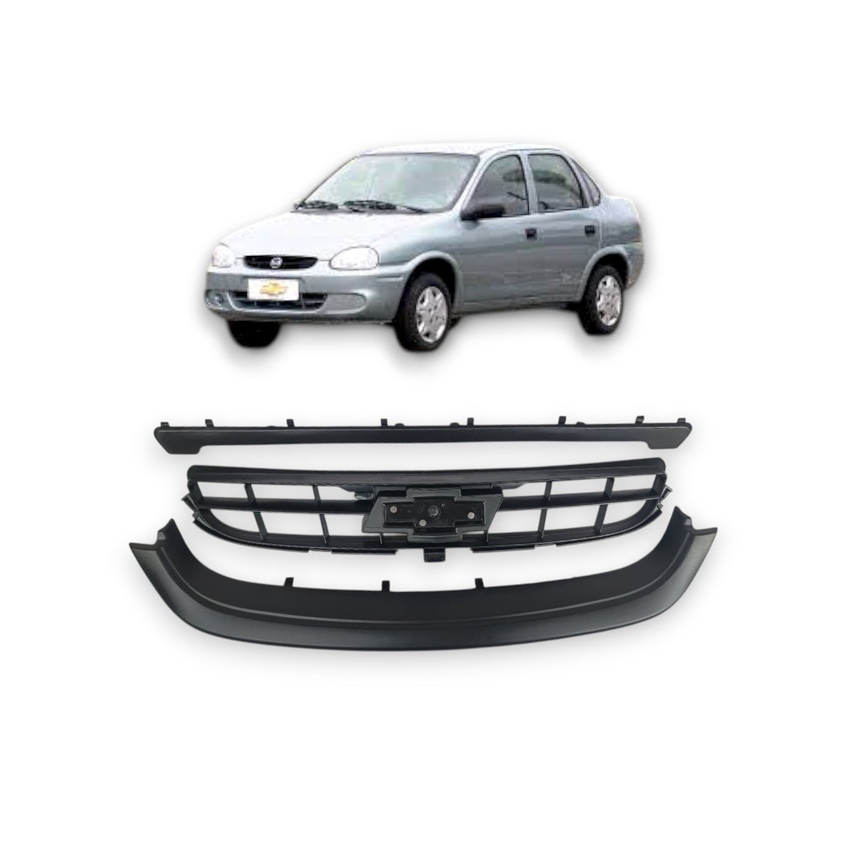 Grade Dianteira Radiador Corsa Classic 2008 a 2010 Preto Com 3 Peças