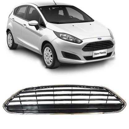 Grade Dianteira Radiador Ford New Fiesta Hatch 2013 a 2016 Preto Com Friso Cromado