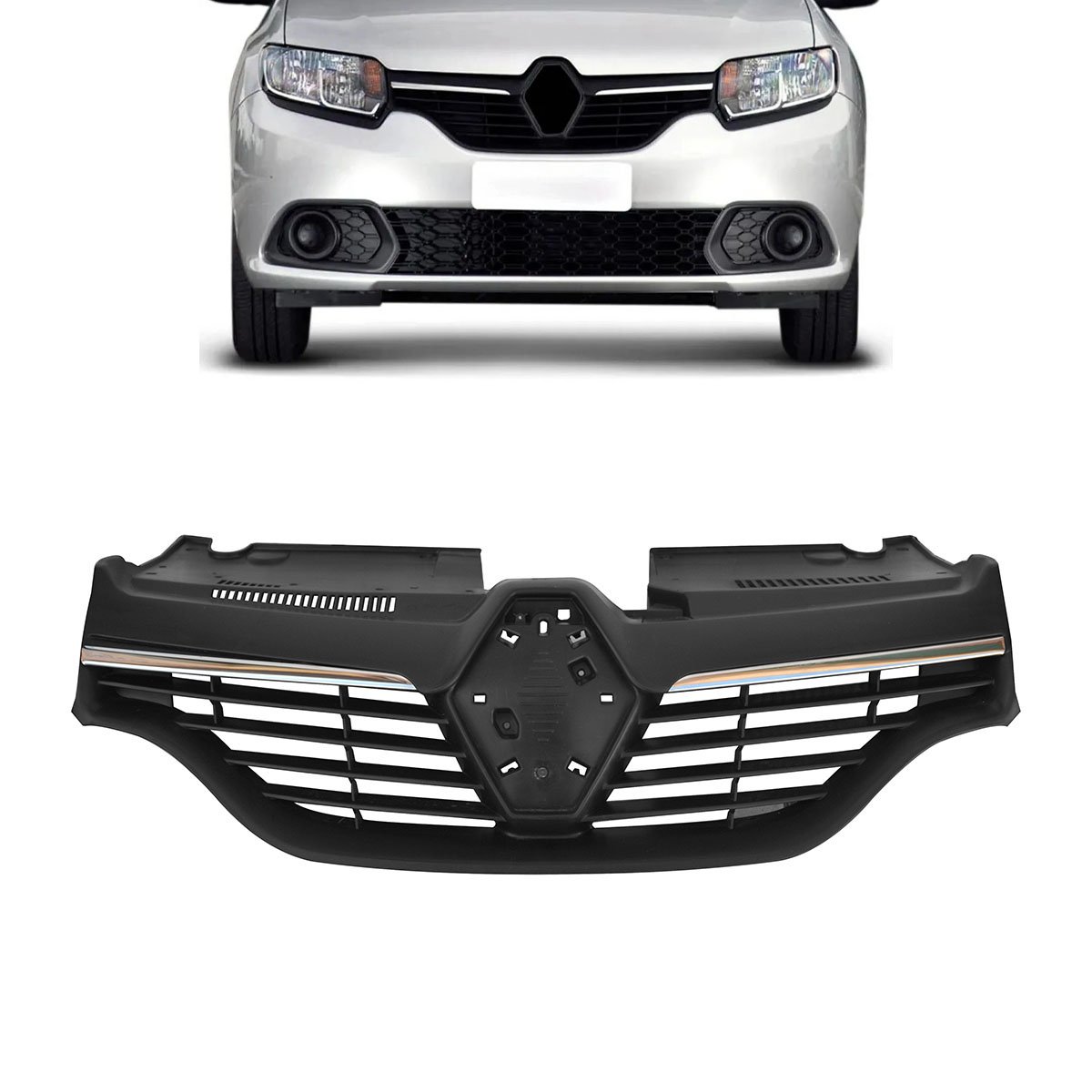 Grade Dianteira Radiador Sandero 2015 a 2019 Logan 2014 a 2019 Preto Friso Cromado