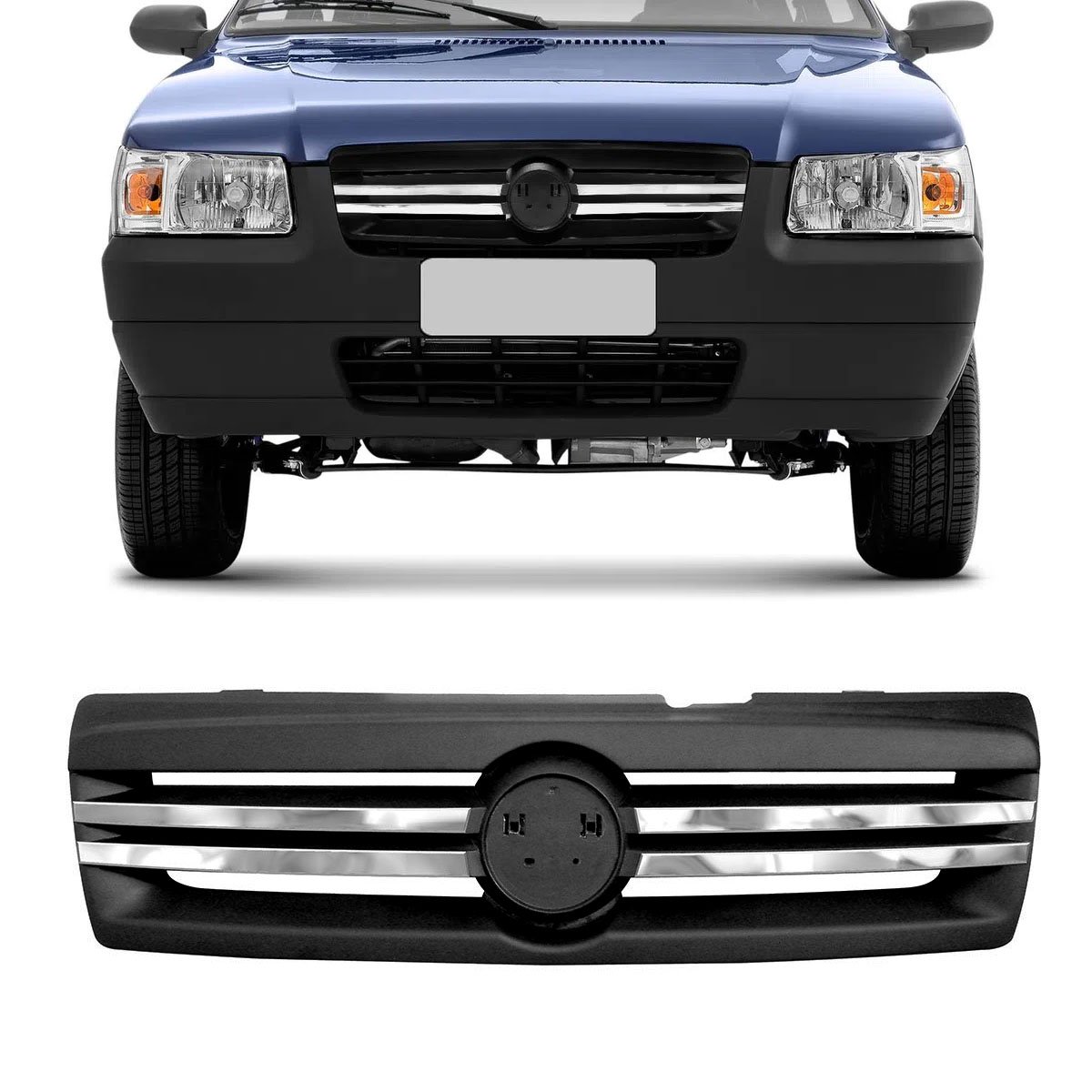 Grade Dianteiro Radiador Uno Fiorino Fire 06 a 13 Preto Com Friso Cromado