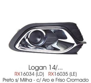 Grade Milha Parachoque Dianteiro Logan 2015 a 2019 Sem Furo Preto e Cromado Direito