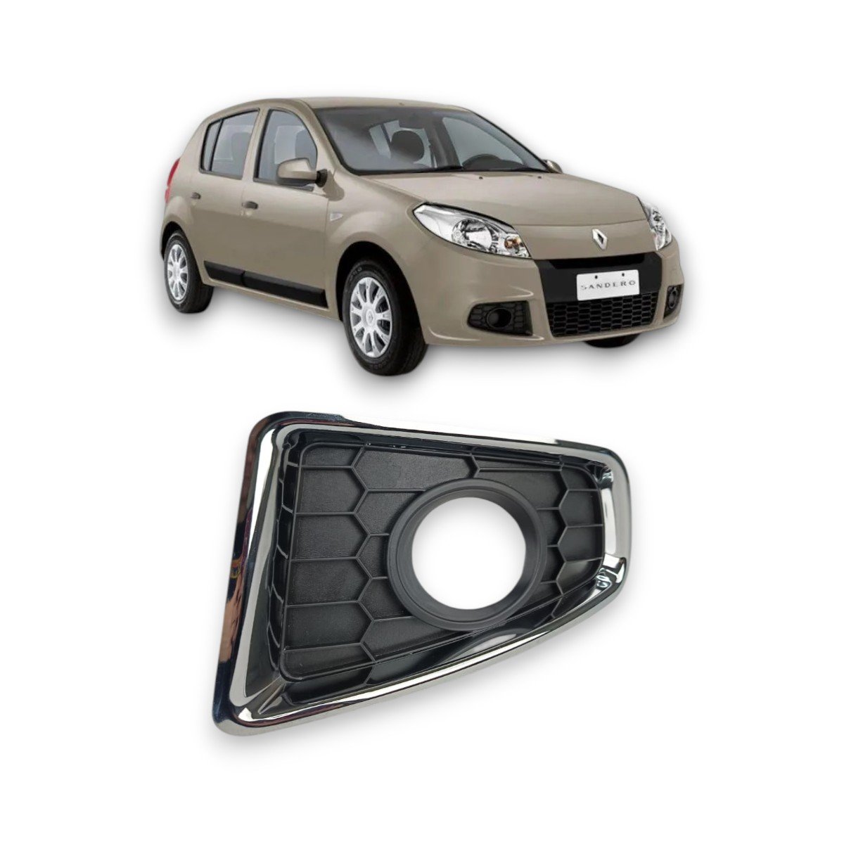 Grade Milha Parachoque Dianteiro Sandero 2011 a 2014 Com Furo e Aro Cromado Lado Esquerdo Motorista