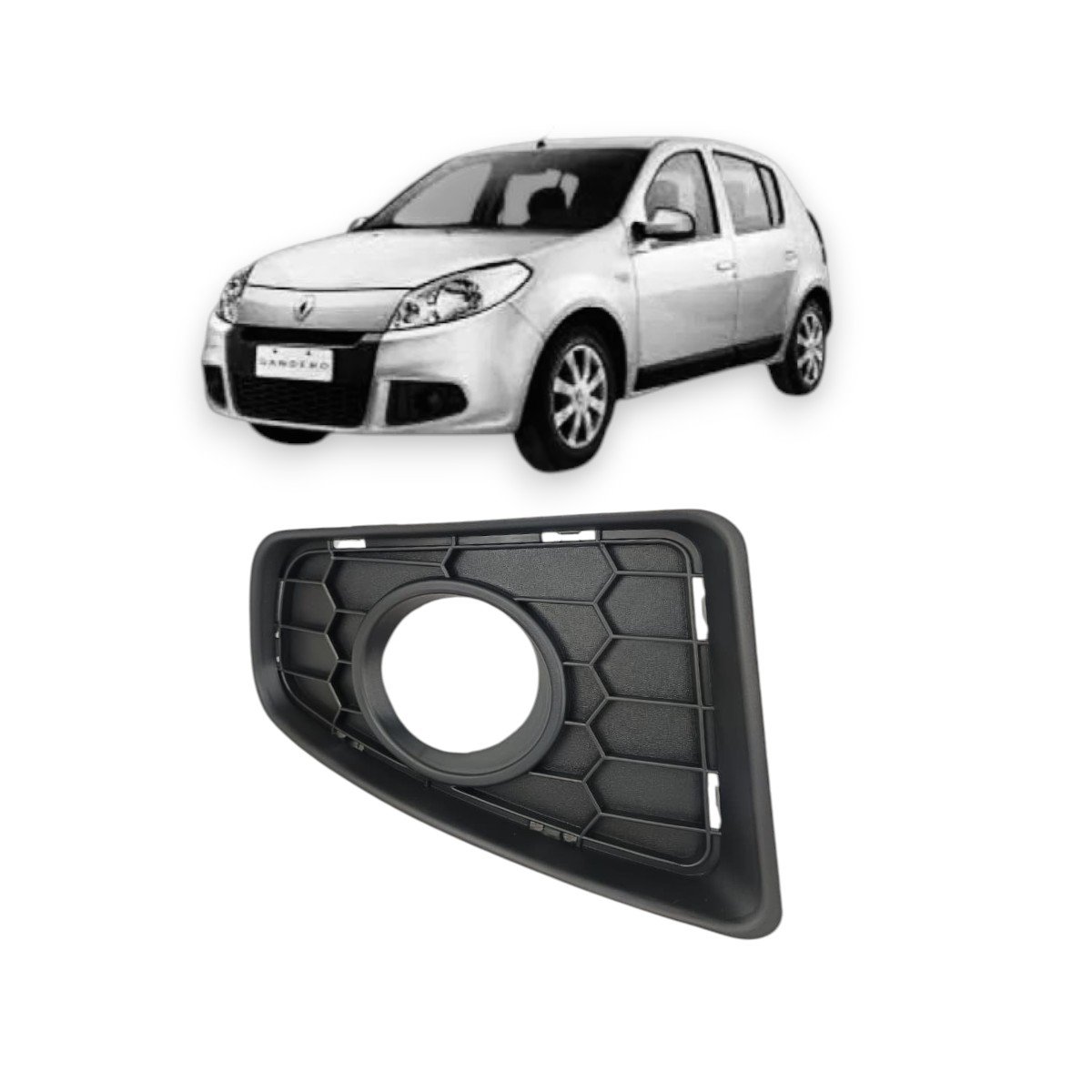 Grade Milha Parachoque Dianteiro Sandero 2011 a 2014 Com Furo Lado Direito Passageiro