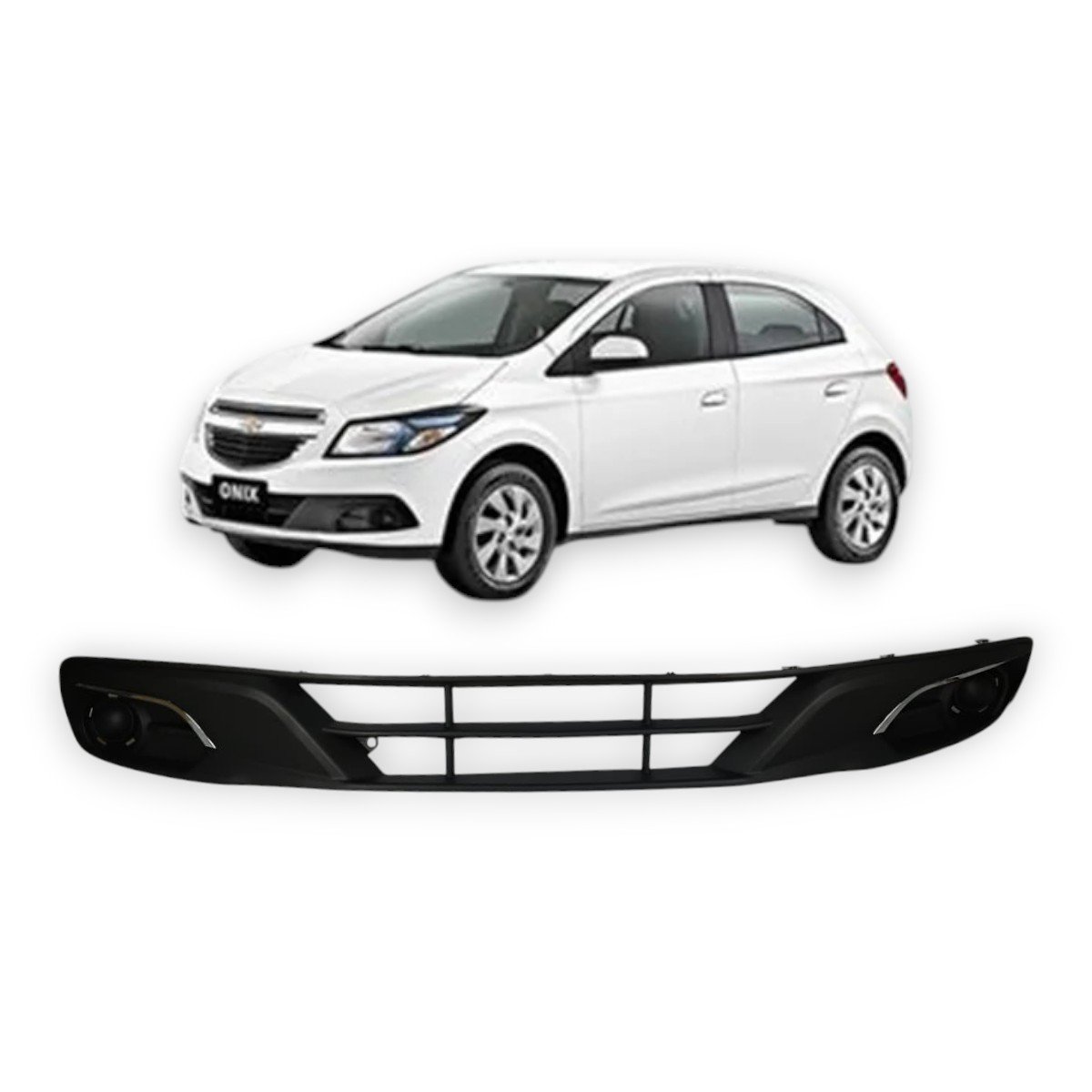 Grade Parachoque Dianteiro Central Inferior Onix 2012 a 2016 Prisma 2013 a 2016 Preta Friso Cromado Sem Furo Farol Milha