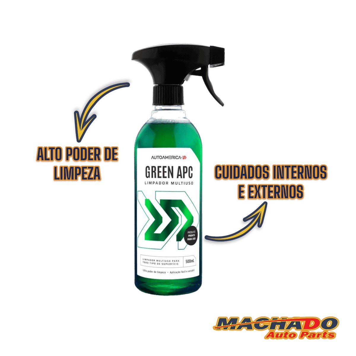 O Green APC da Autoamerica é um limpador multiuso pronto para uso, desenvolvido para proporcionar eficiência e segurança na limpeza de diversas superfícies automotivas. Ideal para eliminar sujeiras variadas em superfícies como plástico, tecido, couro, lataria, borracha e vidro, sem danificar.