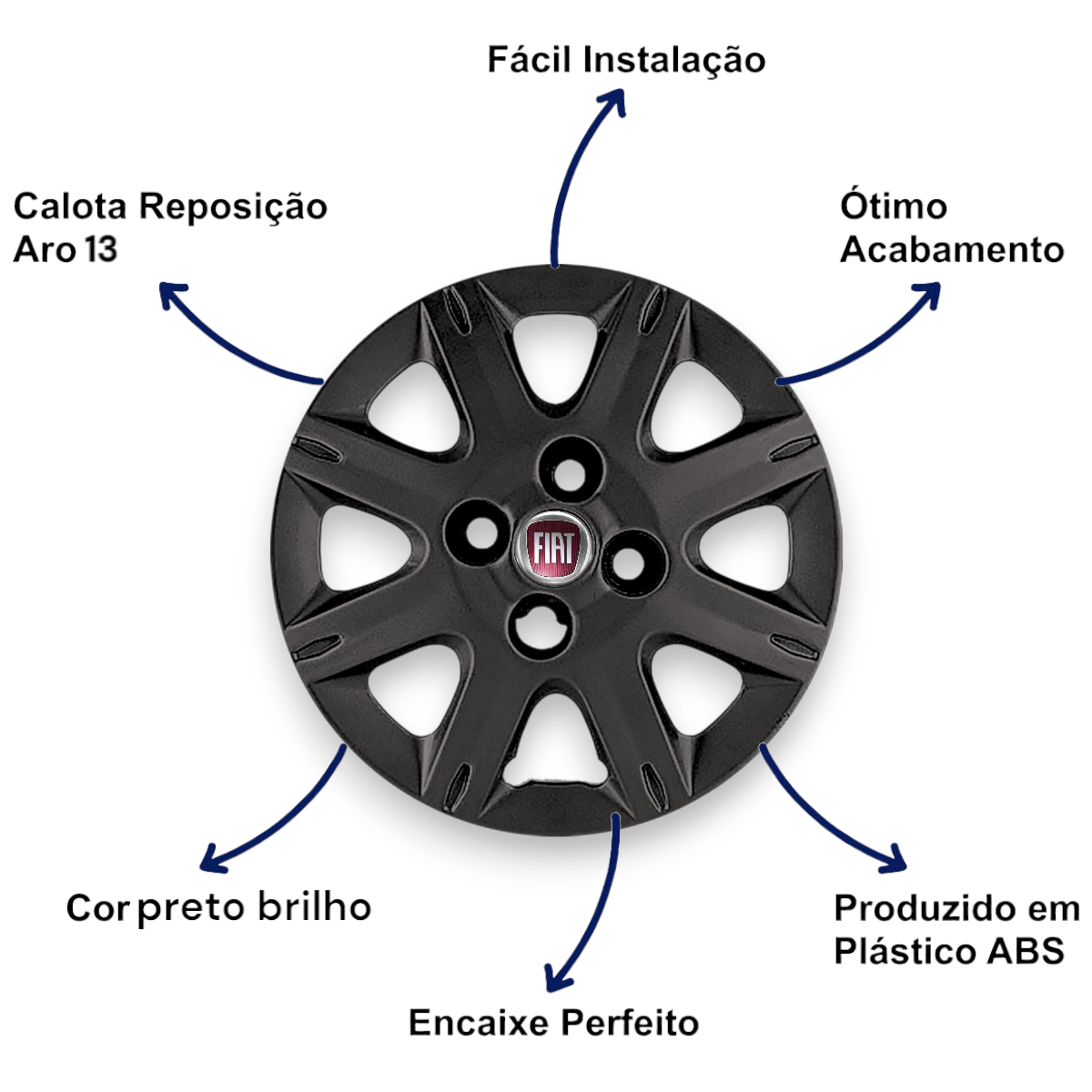 Jogo Calota Aro 13 Uno Way 1987 Até 2013 Preto Brilho