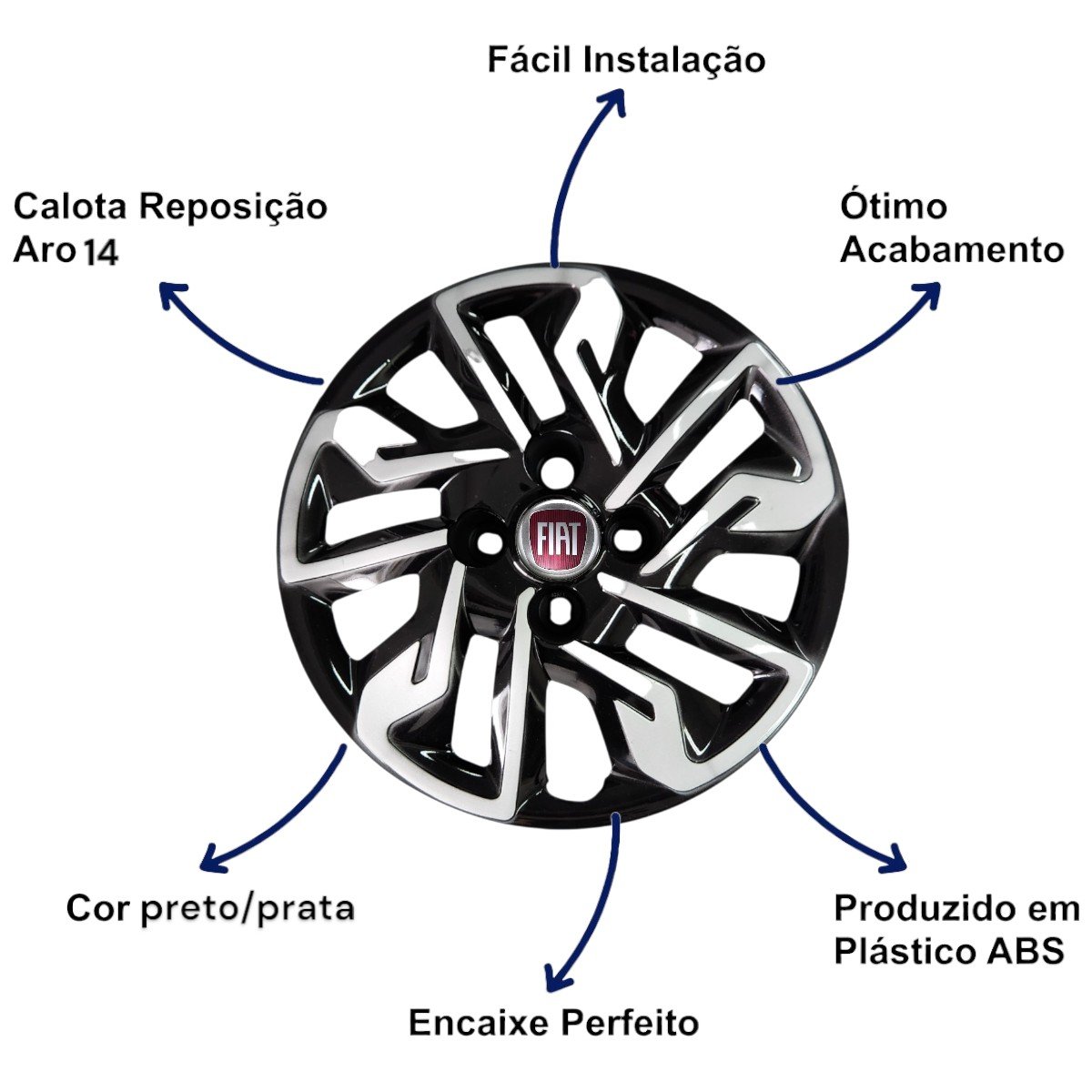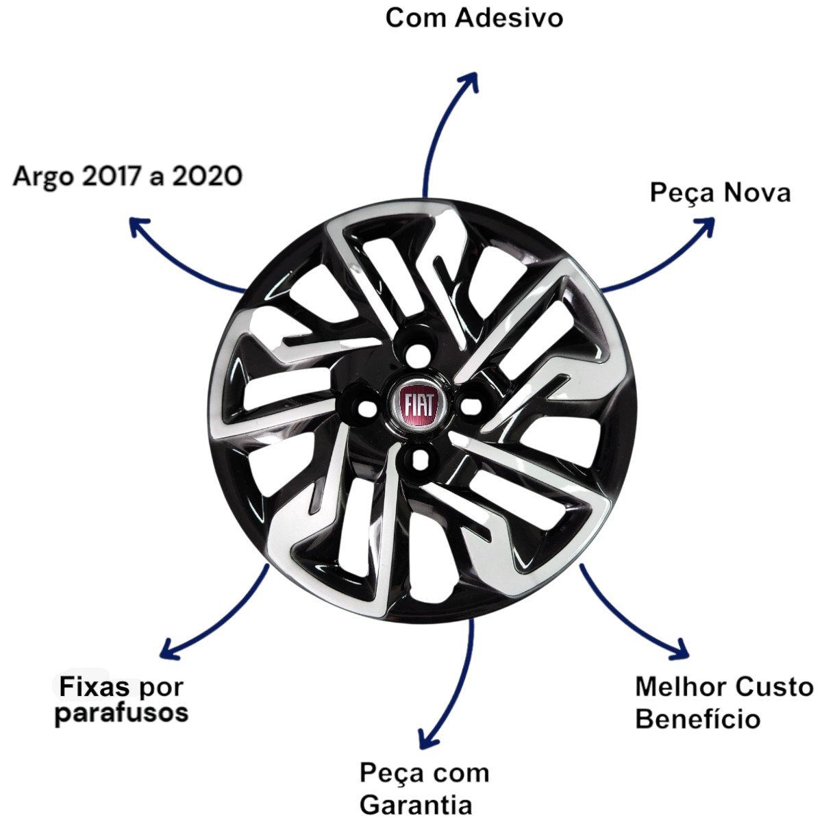 Jogo Calota Aro 14 Argo 2017 Até 2020 Prata e Preto