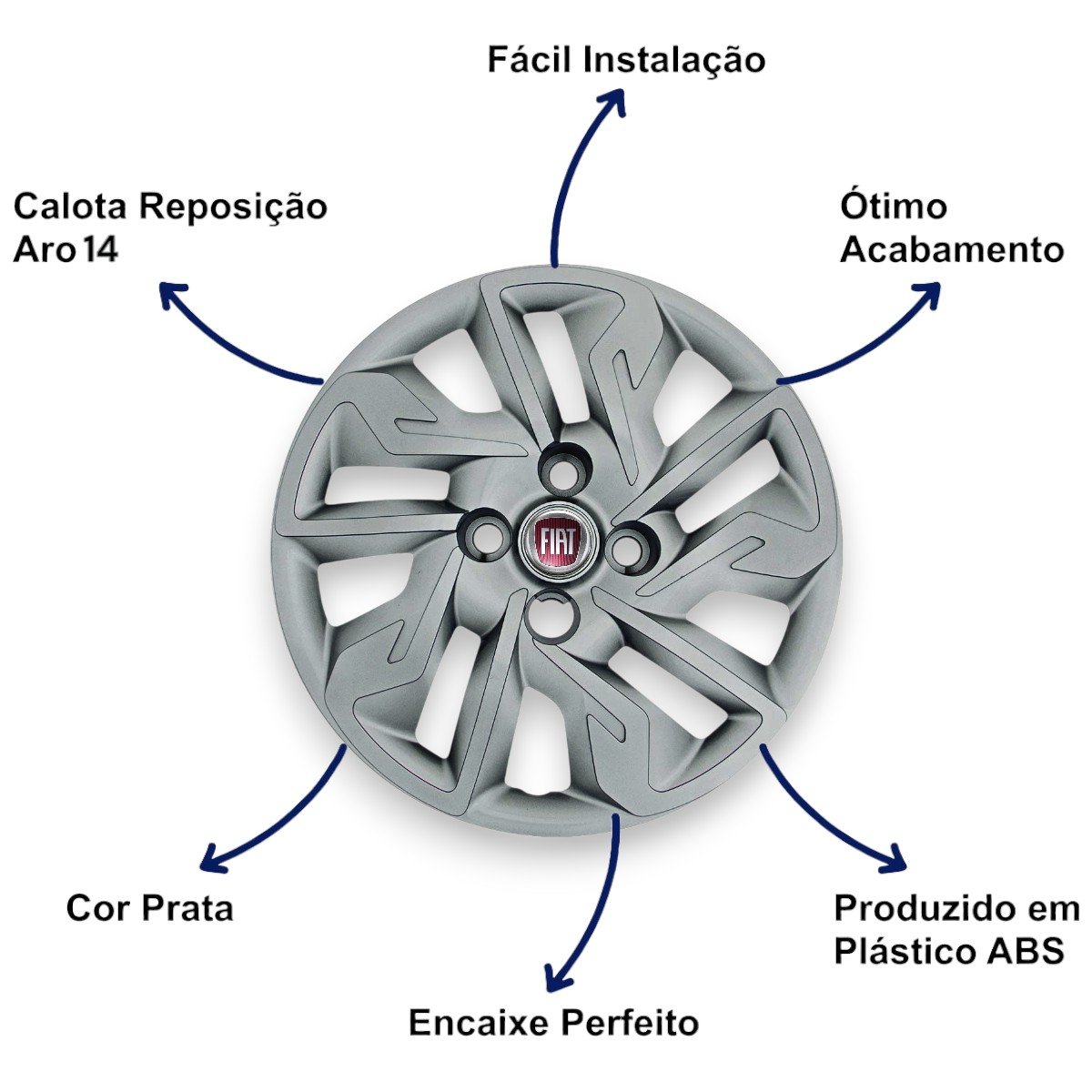 Jogo Calota Aro 14 Argo 2017 a 2020 Cubo Baixo Parafusada GRID