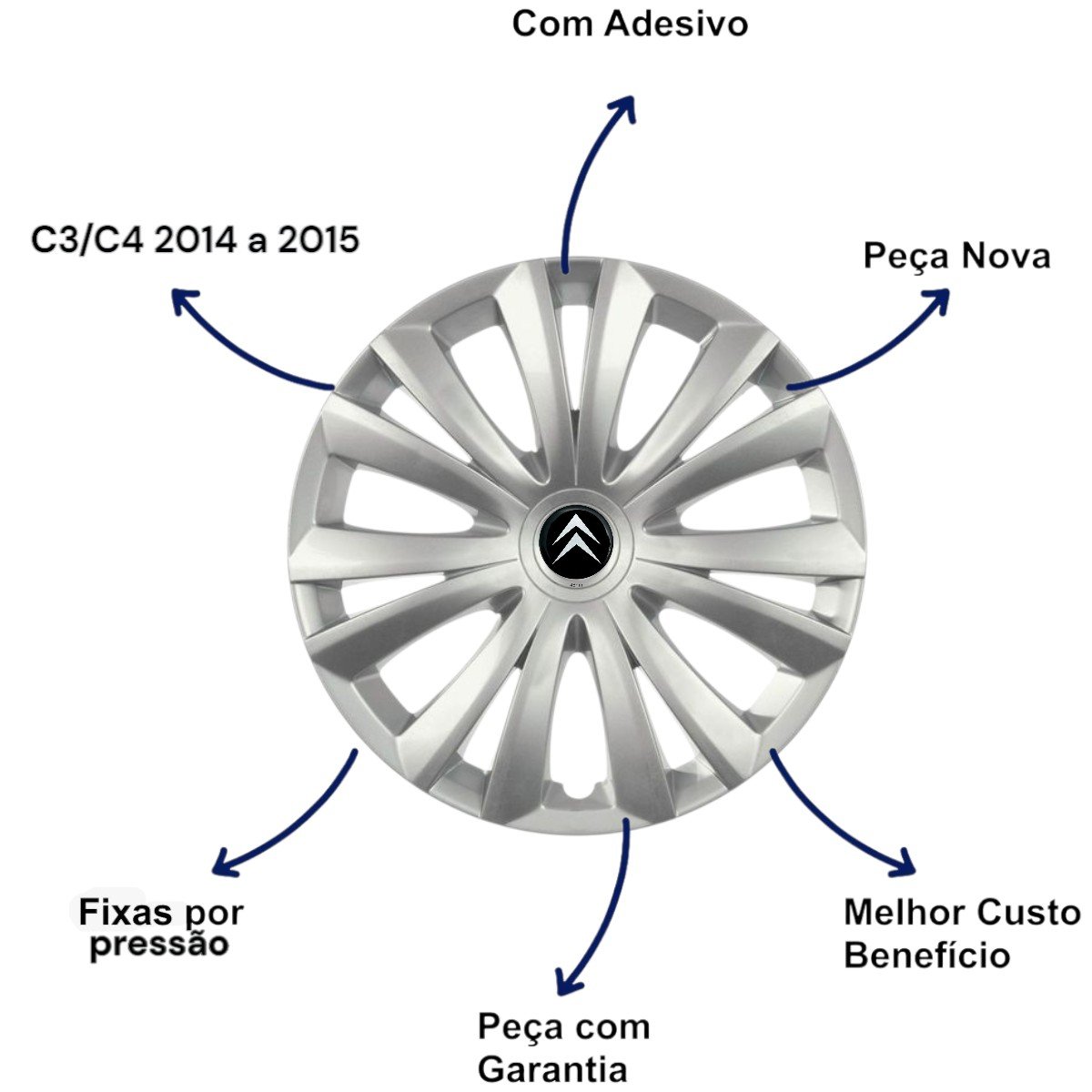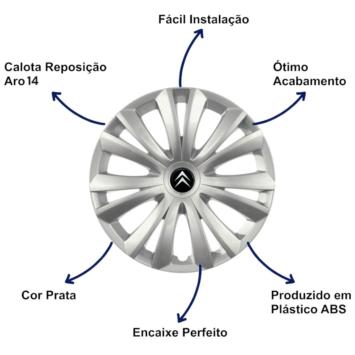 Jogo Calota aro 14 citroen C3 E C4 2002 Até 2015 Cubo Padrão