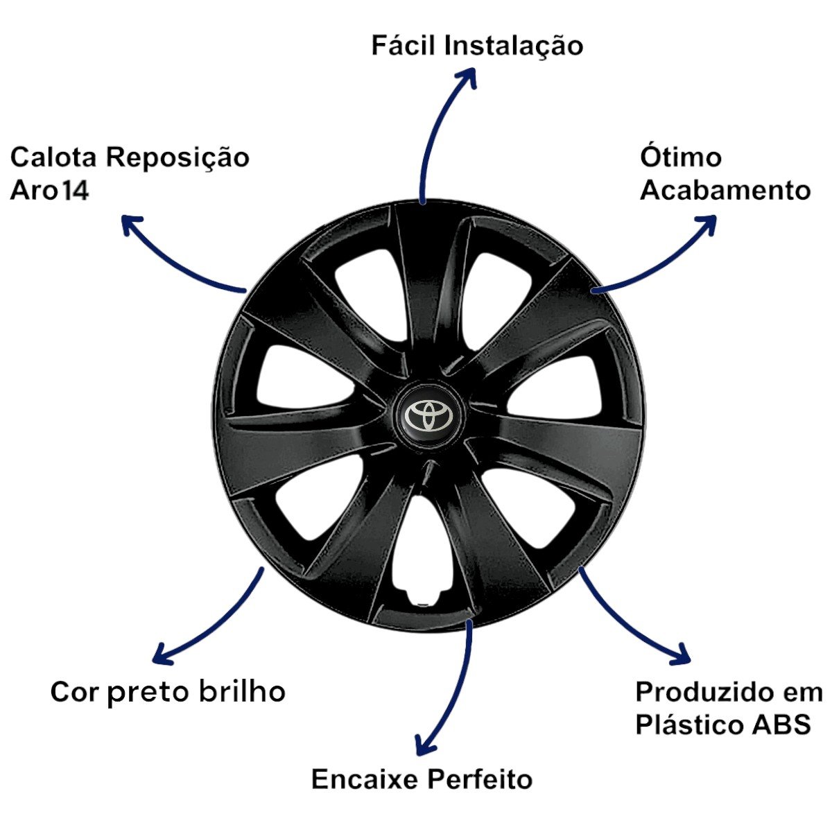 Jogo Calota Aro 14 Etios 2014 Cubo Padrão Encaixe GRID