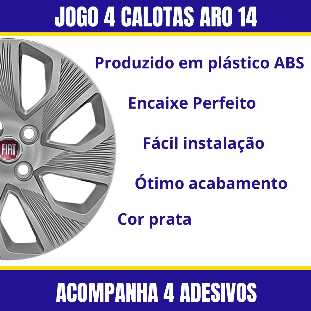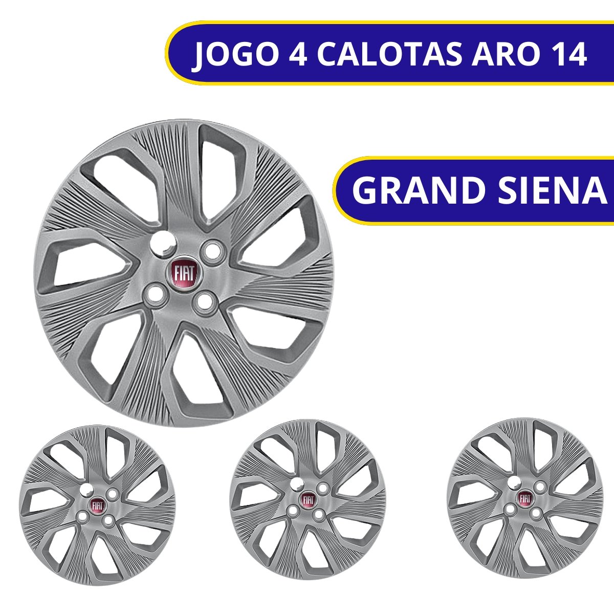 Jogo Calota Aro 14 Fiat Grand Siena 2014 Até 2015 Cubo Baixo Parafusada GRID