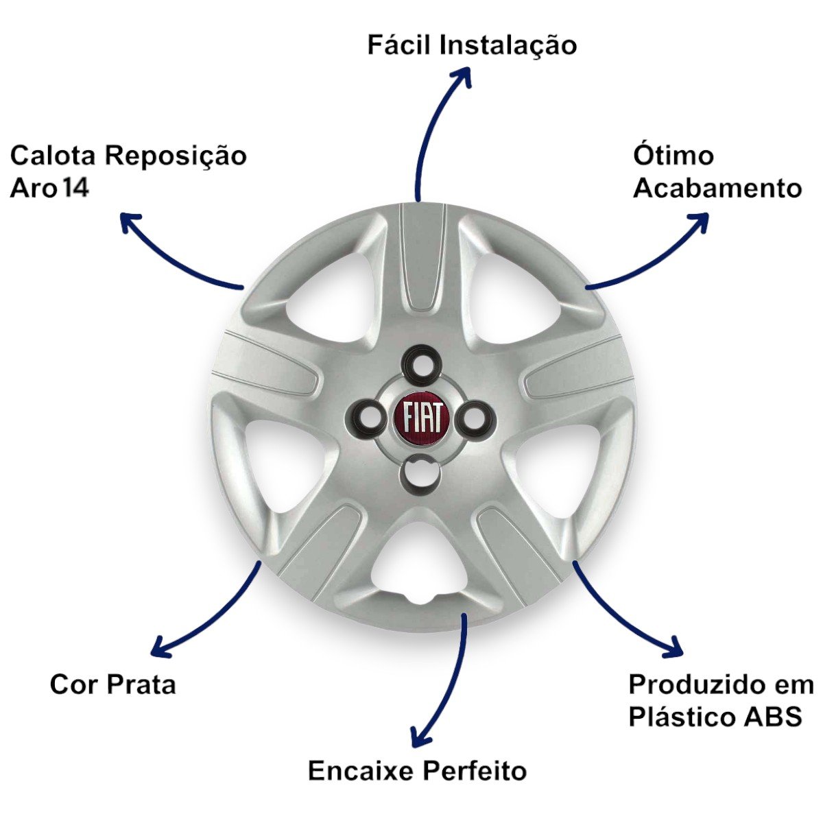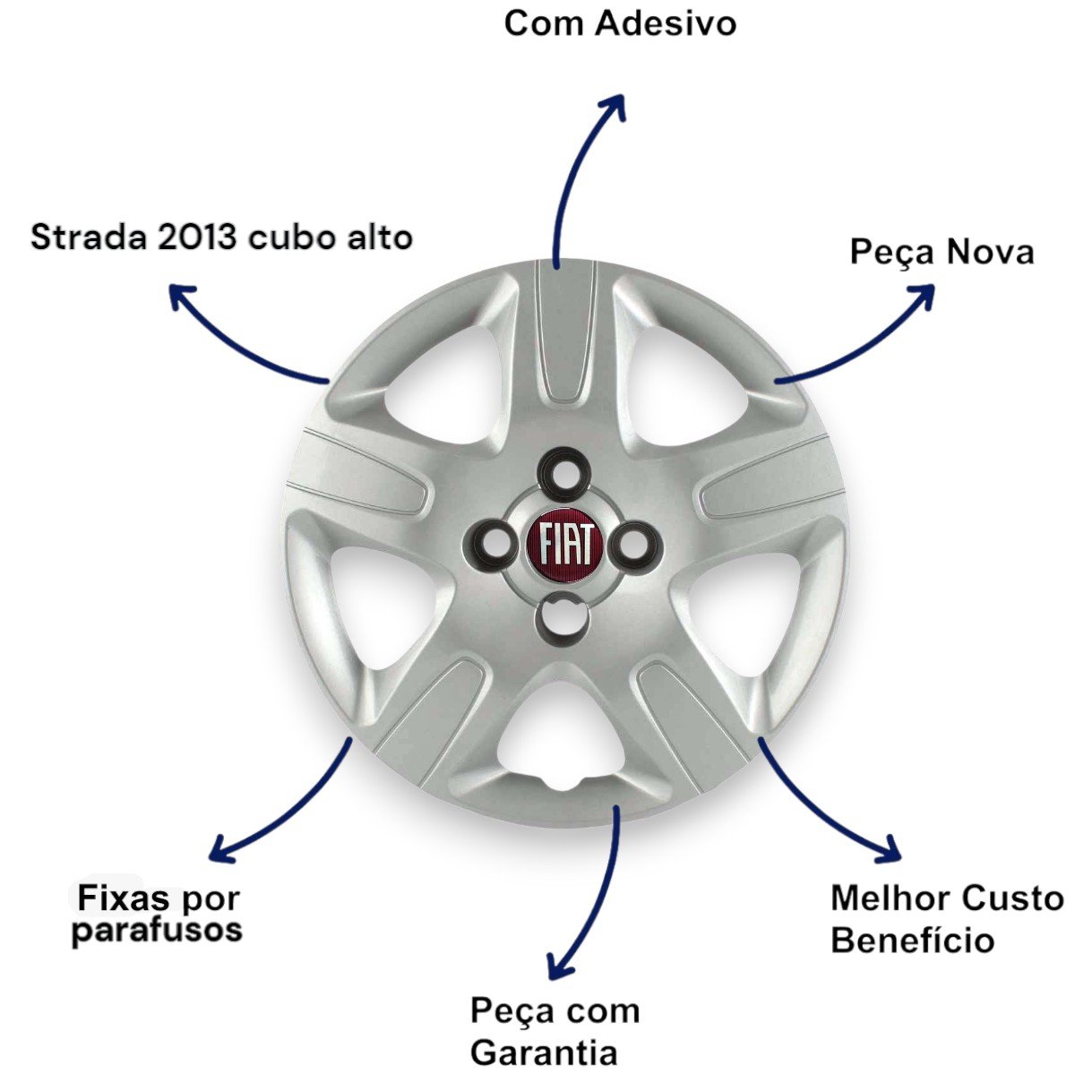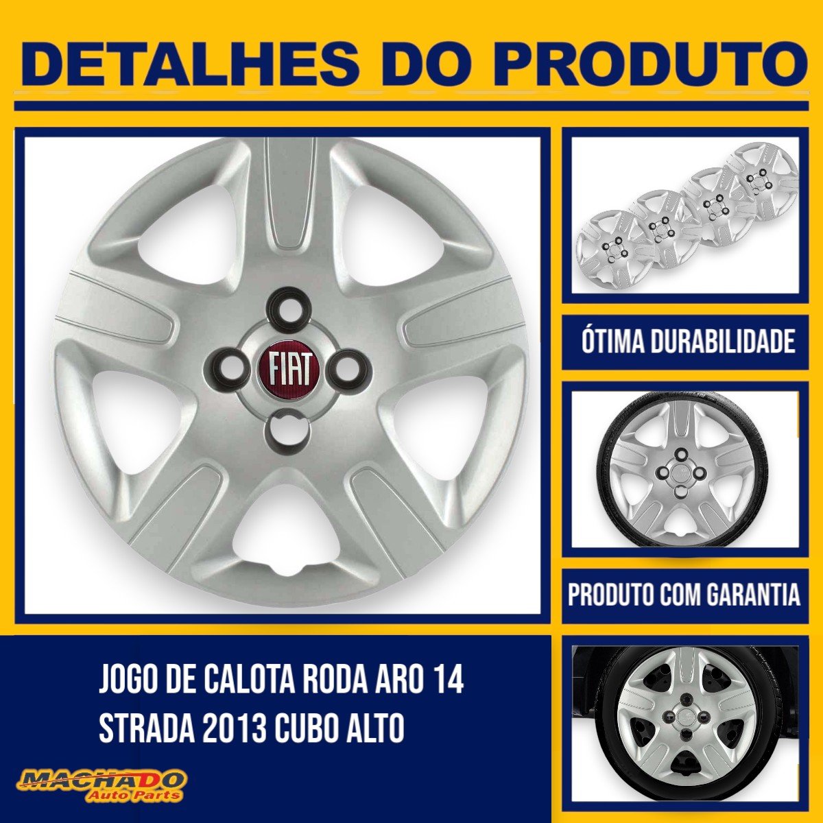 Jogo Calota Aro 14 Fiat Strada 2014 Até 2020 Cubo Alto Parafusada GRID